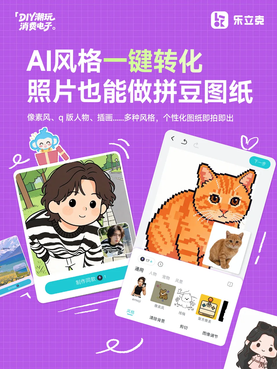 多种AI风格可选,不会画画也能做Q版小人拼豆