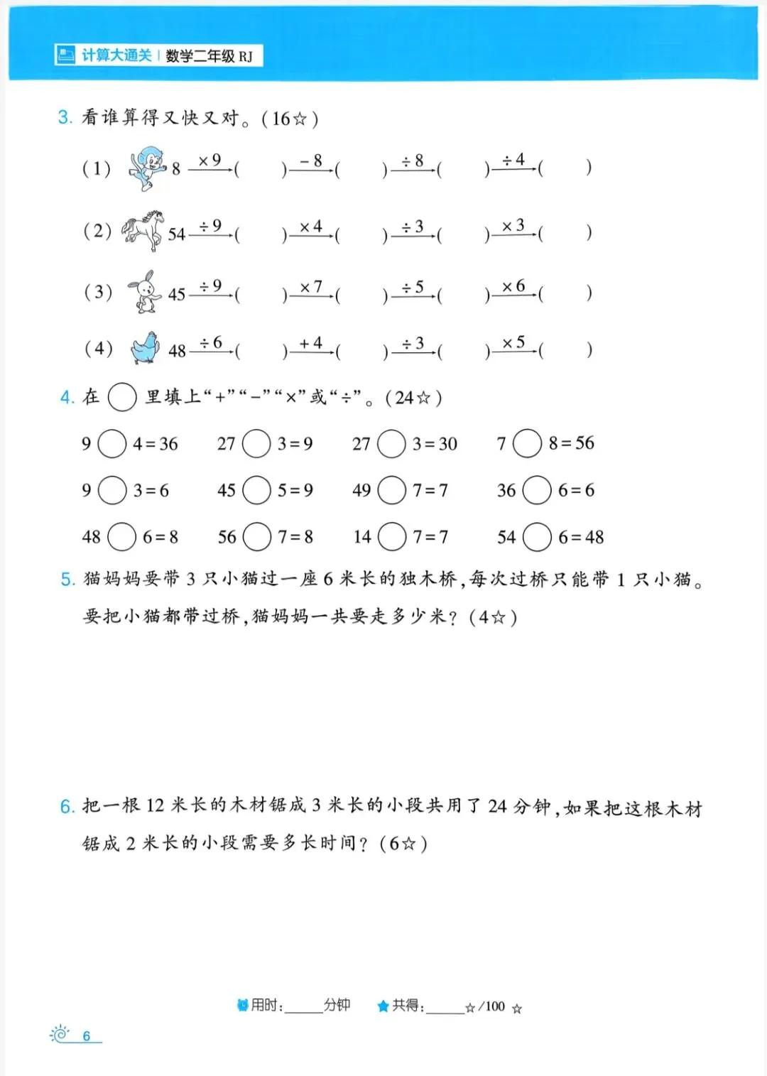 小学数学《计算大通关》二年级26春,电子版,直接打印