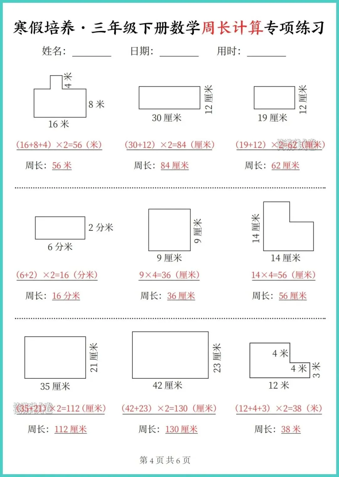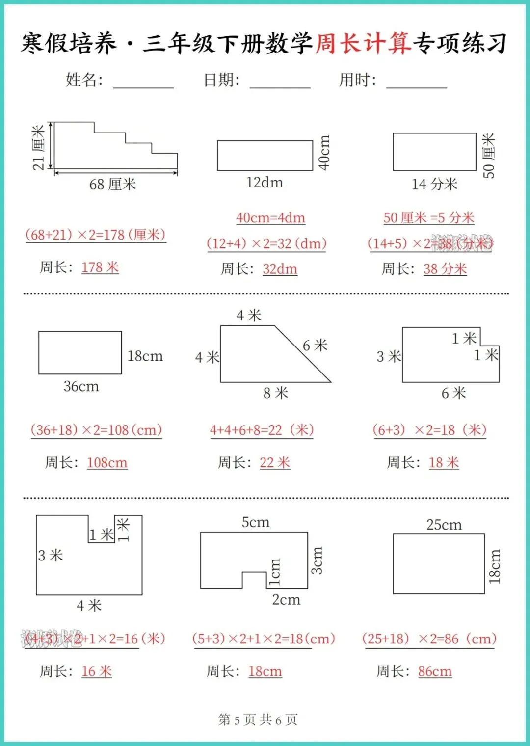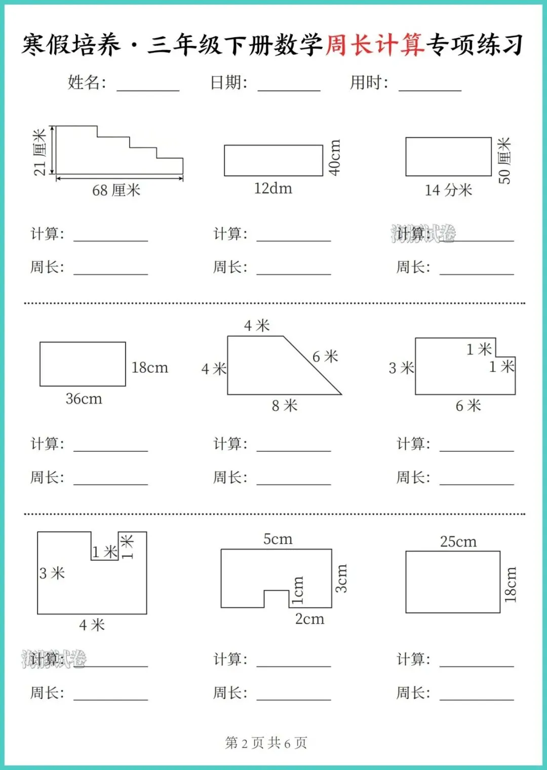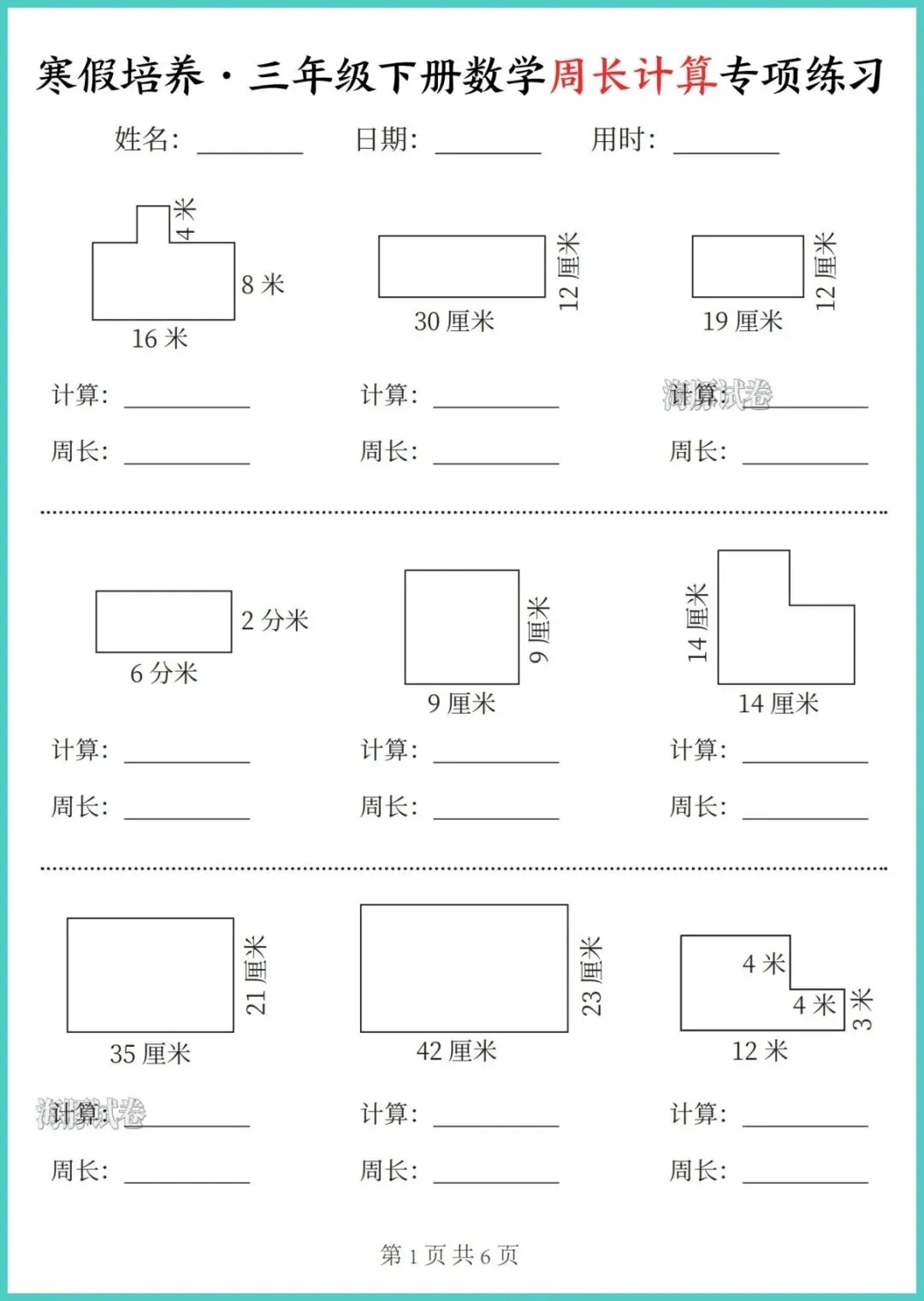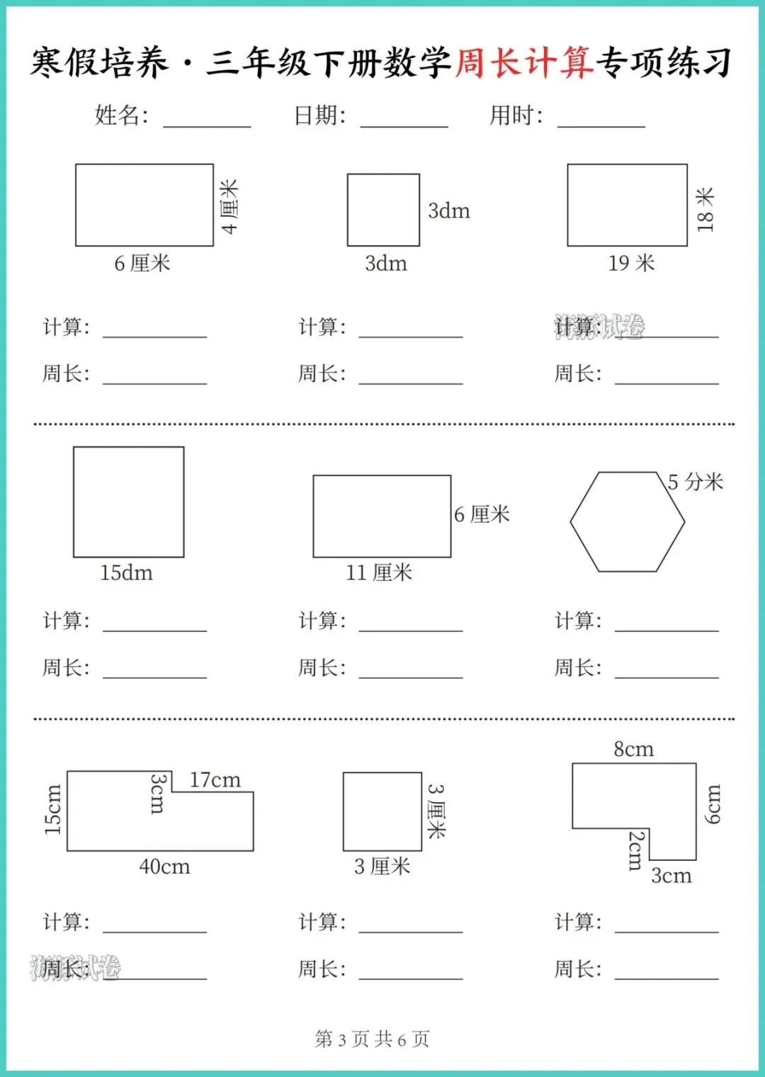 【免费下载】三年级(下)数学周长计算专项练习 | PDF完整高清电子版可打印