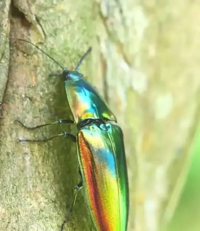 这个彩壳的小虫叫叩头虫,也有地方喊打铁虫,一身铁亮亮的壳子,阳光底下一看,五光十色像谁给上了油,碰它一下装死,丢那里装没气,转头又啪的弹起来,小时候专门抓来比赛,看谁家弹得高,奶奶常说啊,这玩意傻呀,逮住别闹腾,放回树根下有用处,后来长大才明白,野外虫子少了人也孤单,田里热起来反倒清静不少。