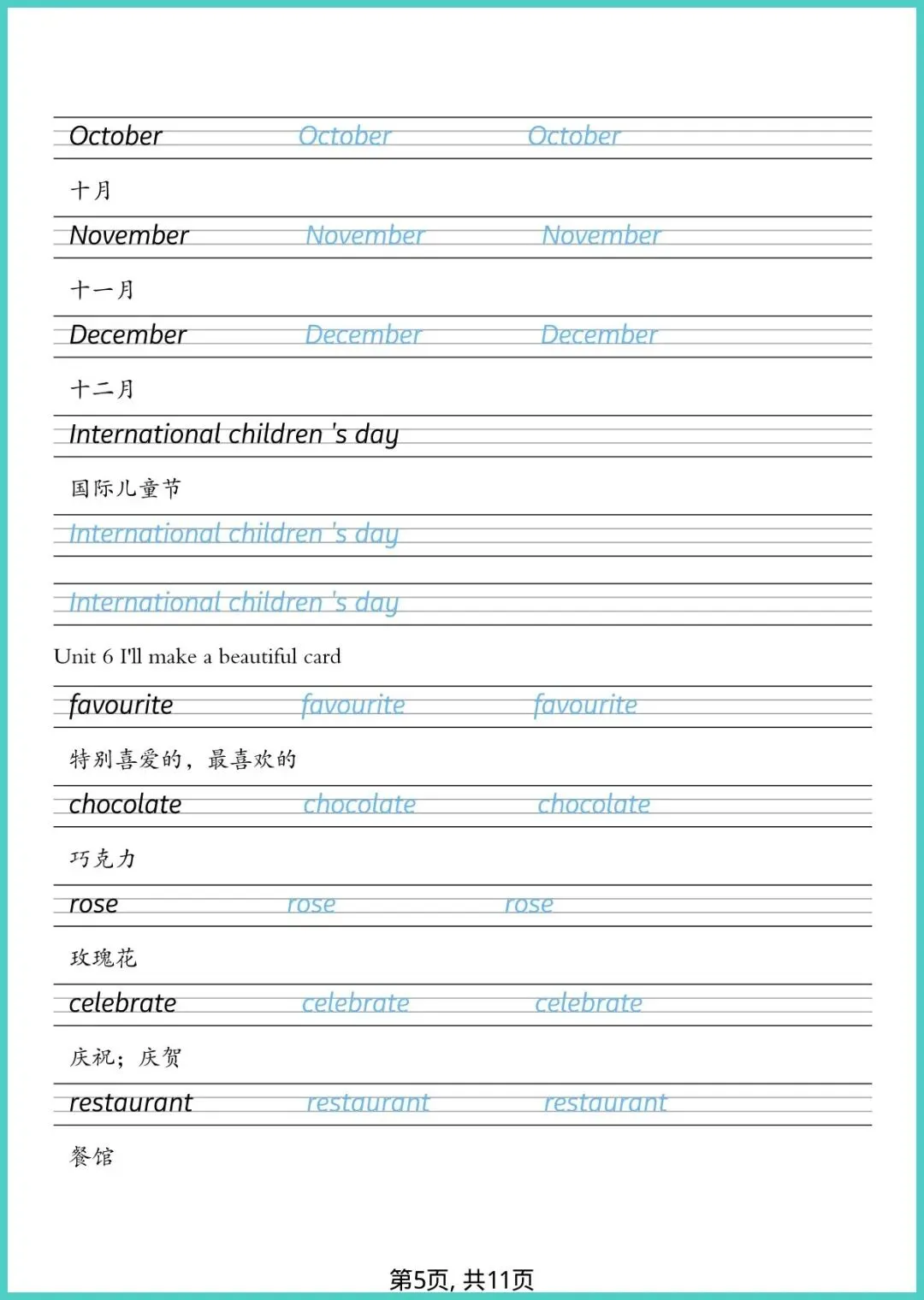 【免费下载】五年级(下)英语_26春单词字帖《湘少版》 | PDF完整高清电子版可打印