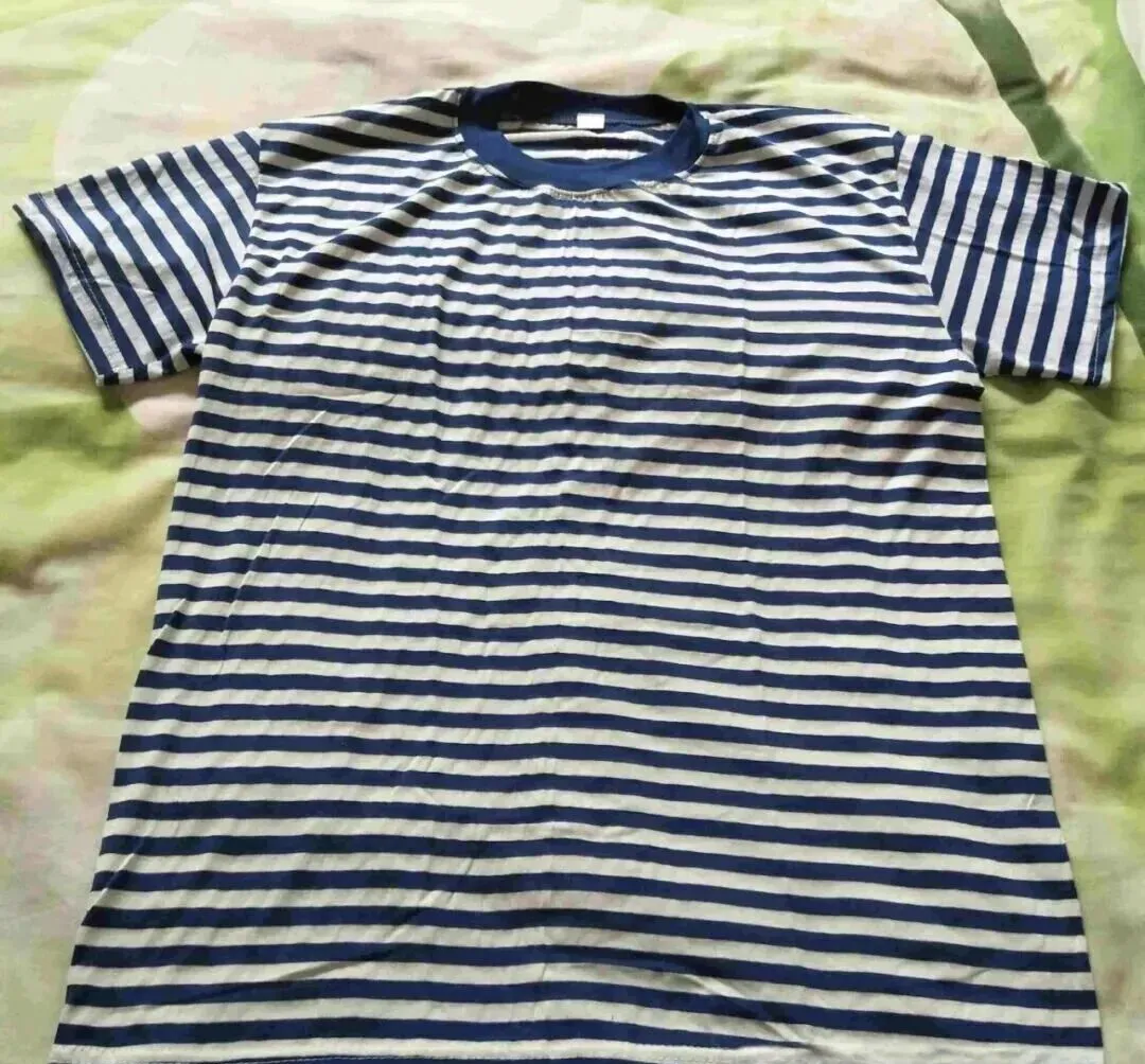 图上这件就是海魂衫,掰着手指头数,谁要能穿着它在胡同里转一圈,别的孩子眼光里带着小羡慕,蓝白条纹整齐排队,松松垮垮不贴身,领子位置硬是带点英气,以前家里有这衣裳的也不多,都是传着穿,洗得发白也不肯随便扔,夏天穿着不黏人,秋天罩在秋衣外头也合适,小时候我那件,是表哥传下来的,他出门前老嘱咐一句,少在地上摔跤,别让袖口破了,穿着有点褪色,那股自豪劲头,一条街就一份,现在小孩讲究潮牌,我们那时心里头最潮的就是这件。