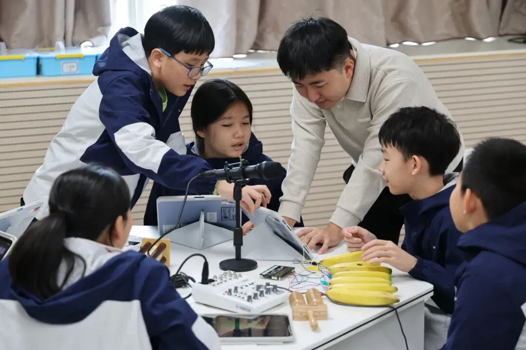 其中,学校以孩子的年龄特征以及兴趣感受为基础,开发了分段式乐器、球类校本课程,希望孩子在小学阶段能喜爱并掌握1-3种乐器和1-3项体育运动。