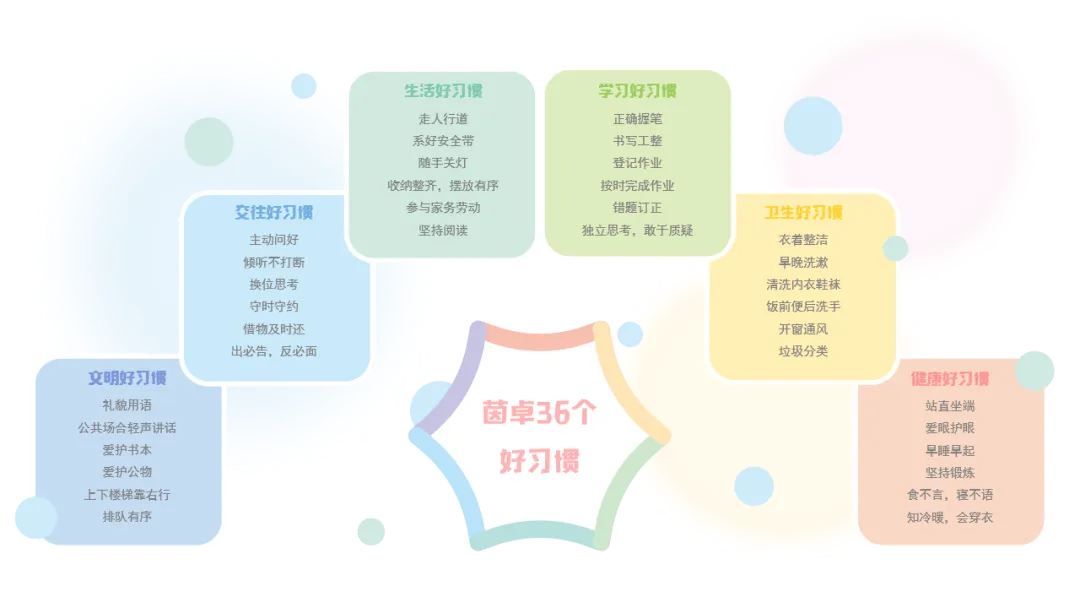 在小学阶段养成良好习惯和品格,对未来的发展至关重要。学校聚焦成长的6大维度,制定“36个好习惯”,培养孩子实现全面发展、创造美好生活的能力。