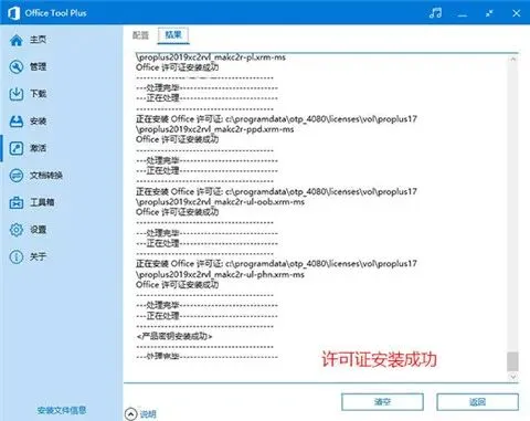 12、可以看到许可证成功安装,至此就是office2019官方免费完整版激活教程了,希望对你有帮助。