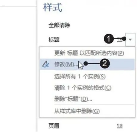 2、打开“修改样式”对话框。弹出“样式”窗格,将鼠标指针指向要修改的样式,然后单击该样式右侧的下三角按钮,在展开的下拉列表中单击“修改”选项,
