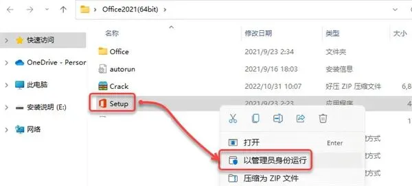 3、鼠标右击【Setup】选择【以管理员身份运行】。