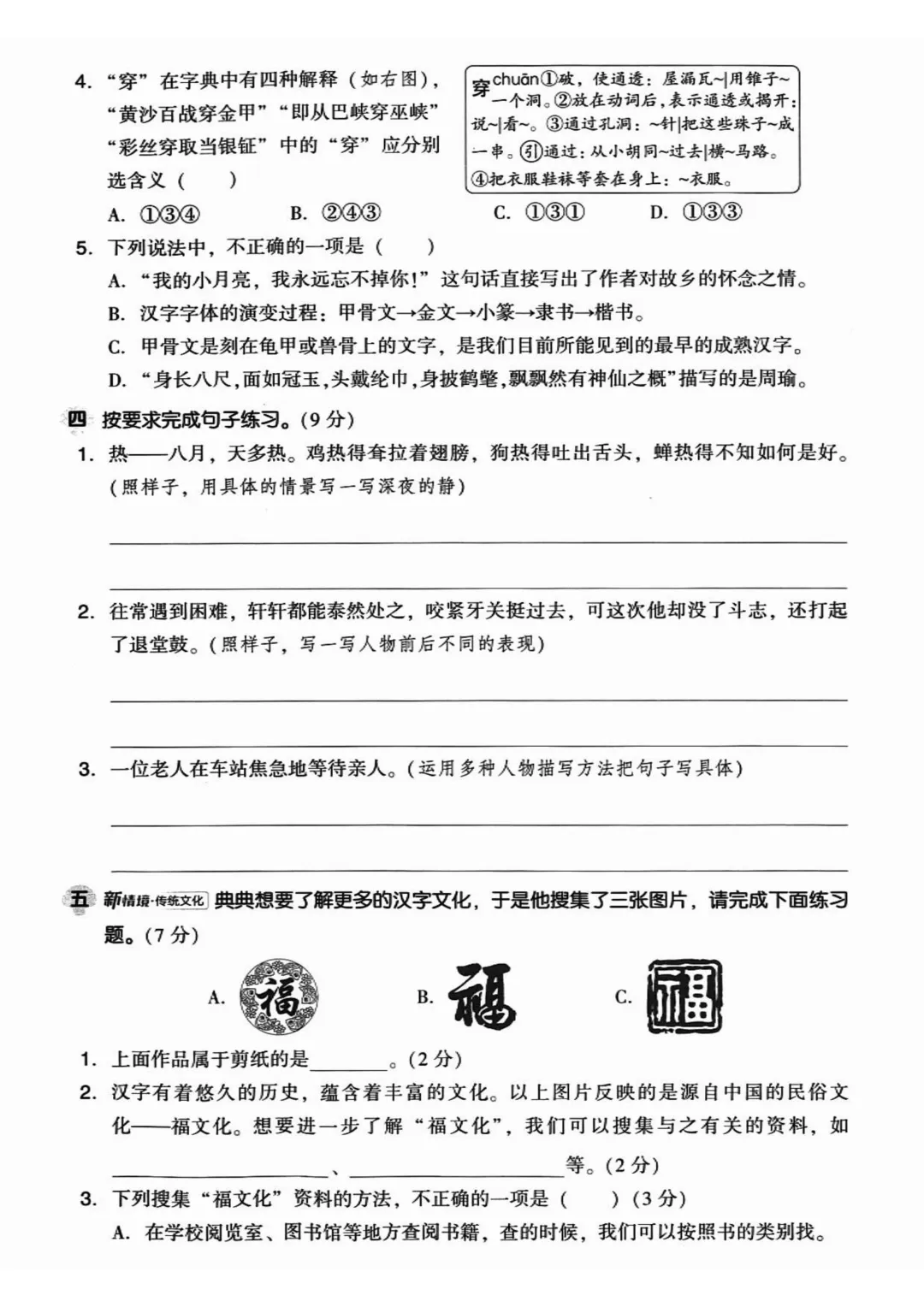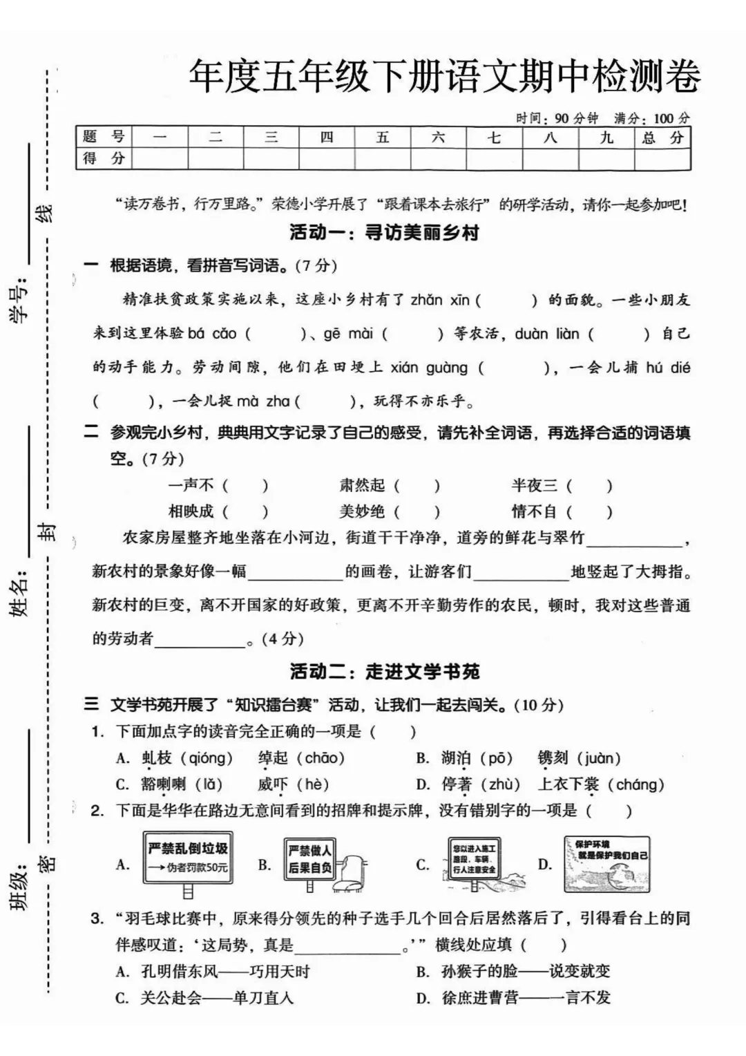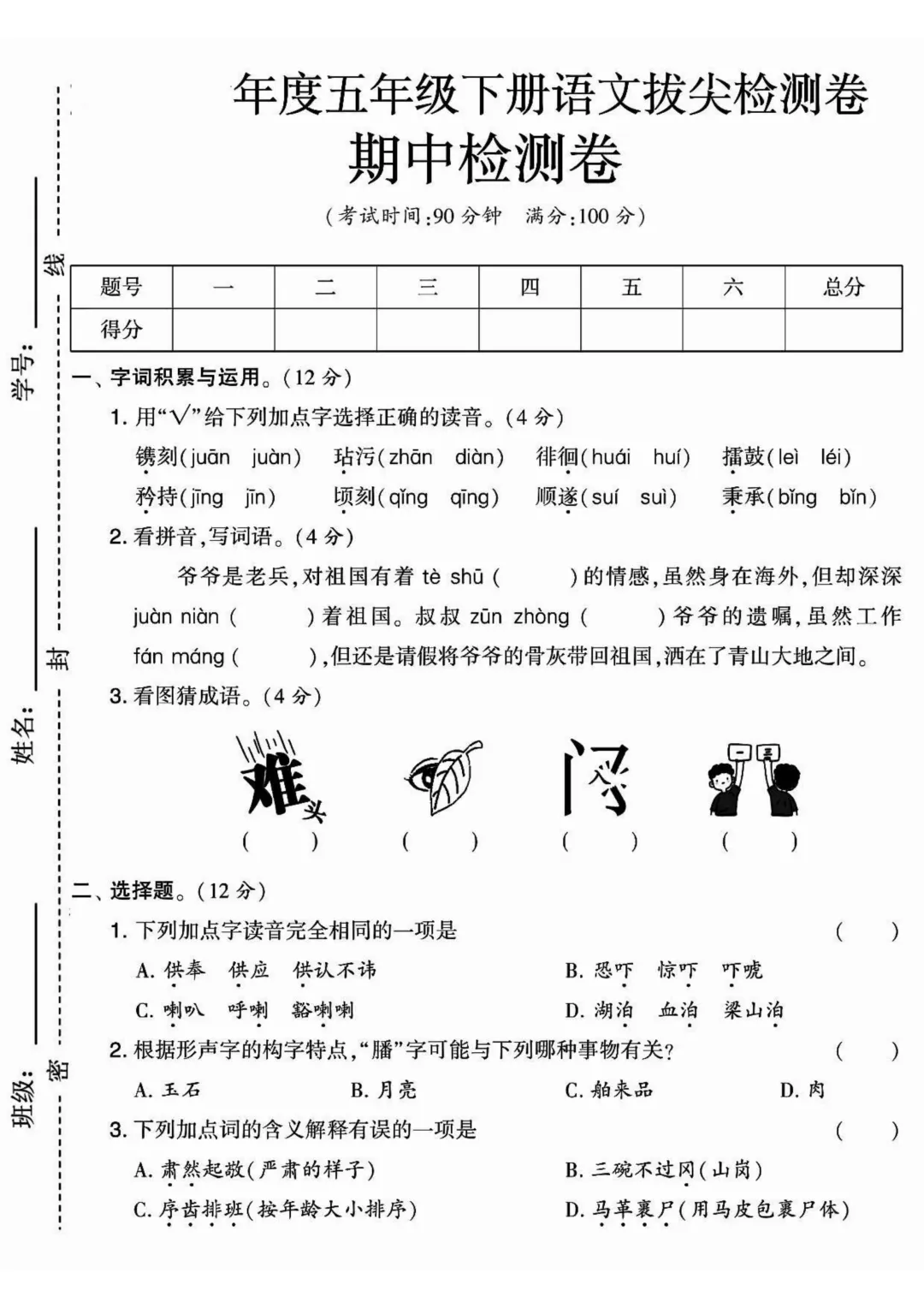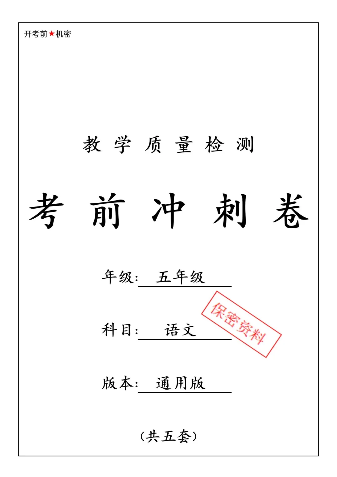 五下语文期中考前冲刺卷5套(电子版可免费下载)