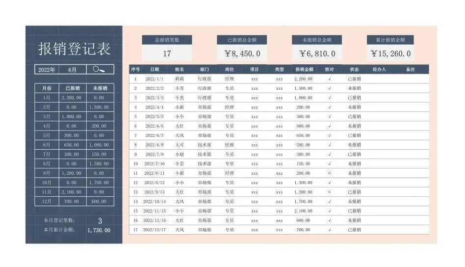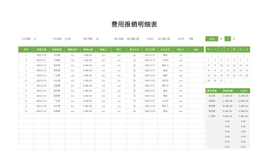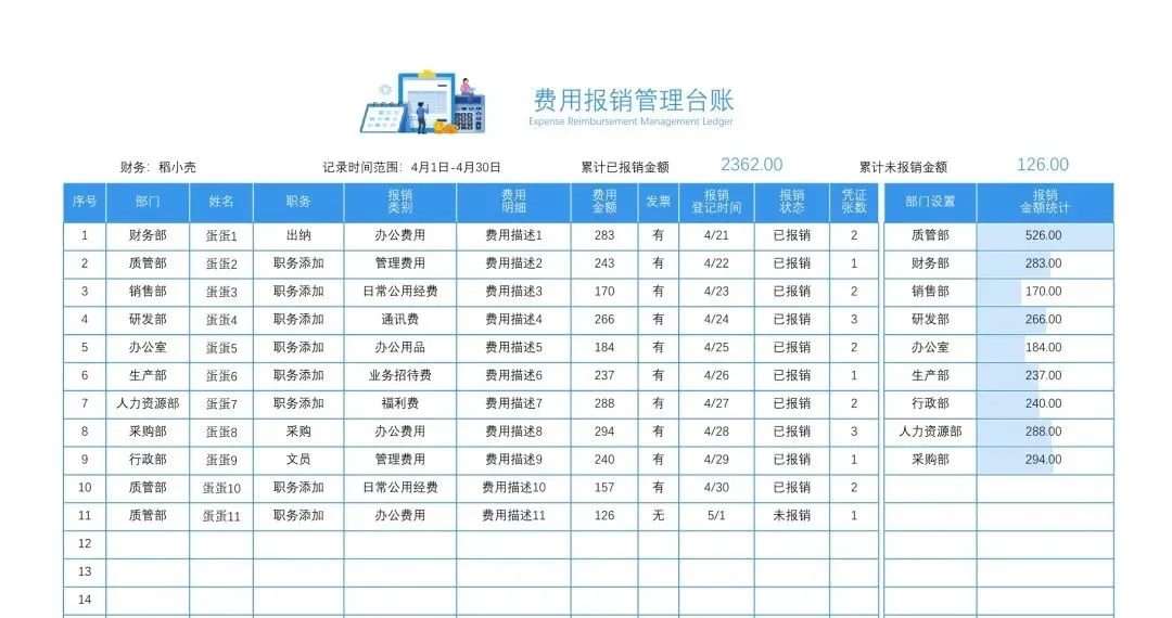 17款+费用报销管理台账,Excel电子版下载!