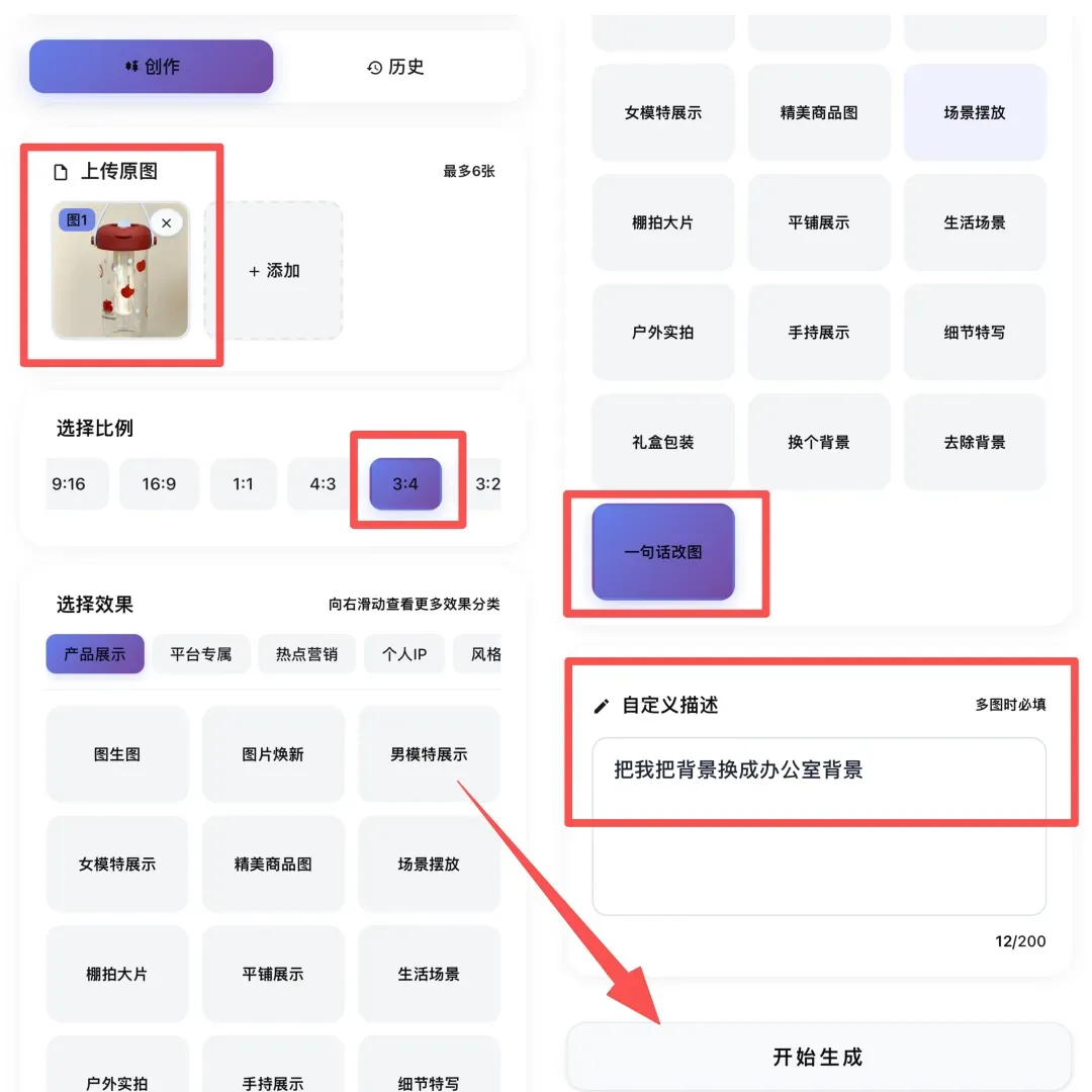 不用专业摄影,不用请模特,几张随手拍的图,几分钟就完成一套详情图。