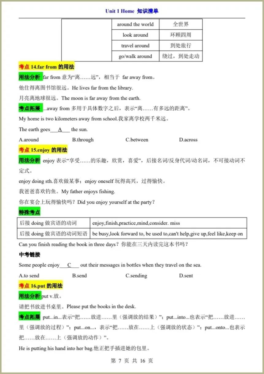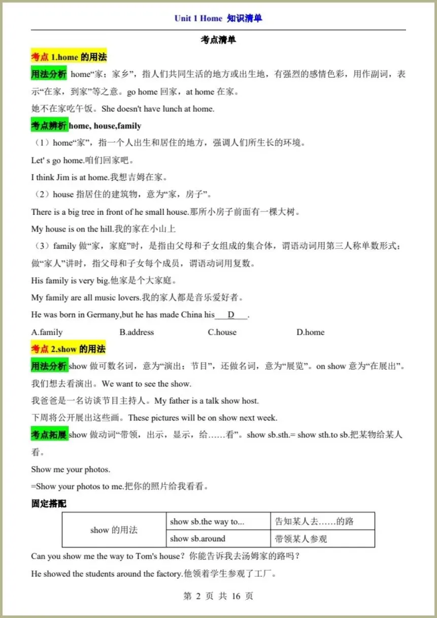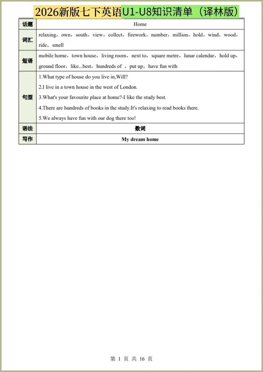 2026春新(译林版)七年级下册《英语》U1-U8全册知识清单,电子版可下载打印!