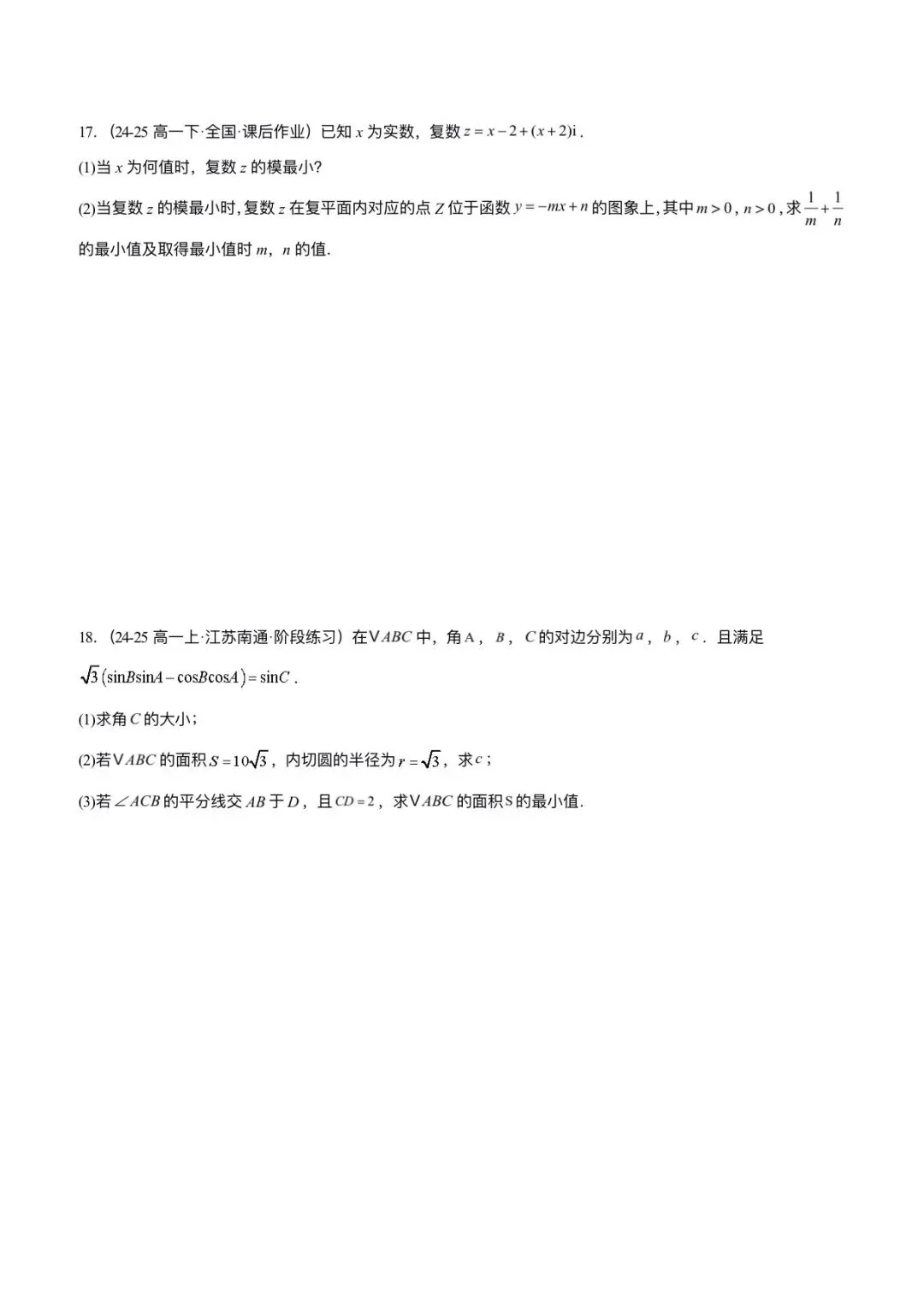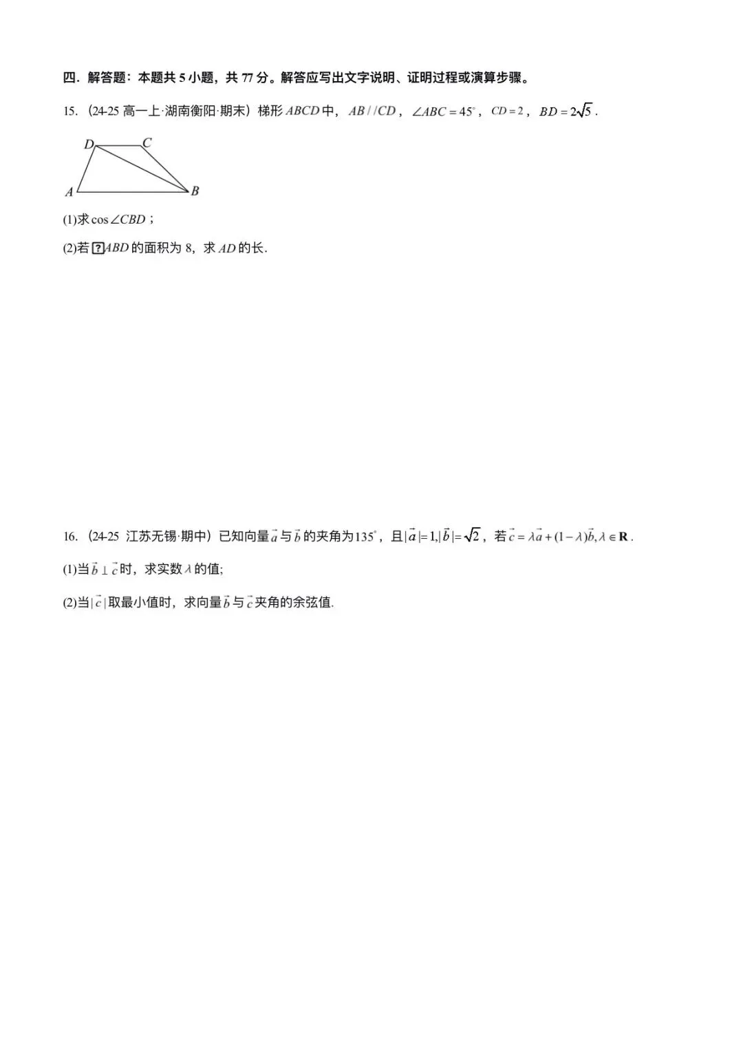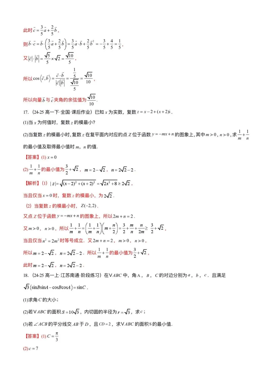 2026新版高一下册必修二册数学(人教A版)期中考试卷(含答案解析共11份)可打印下载!