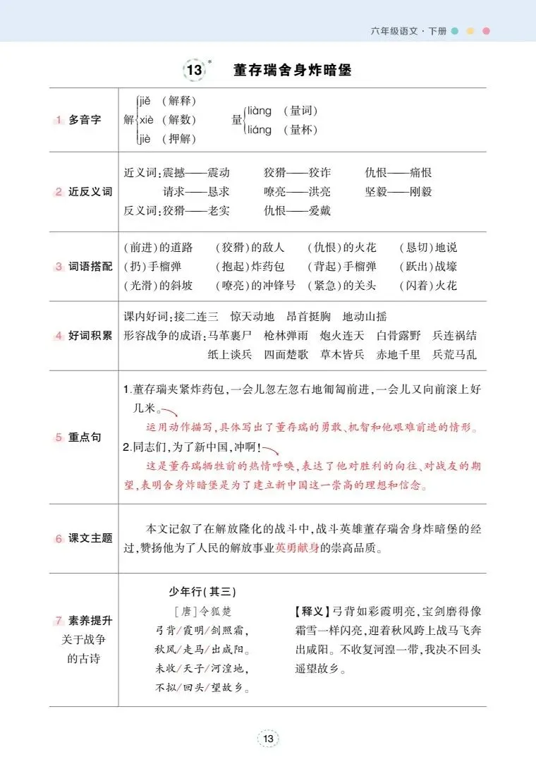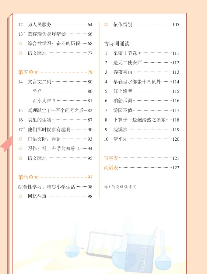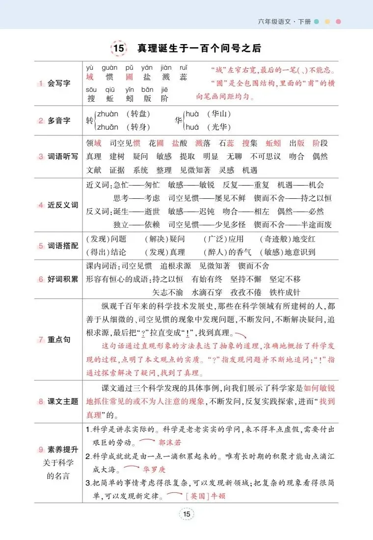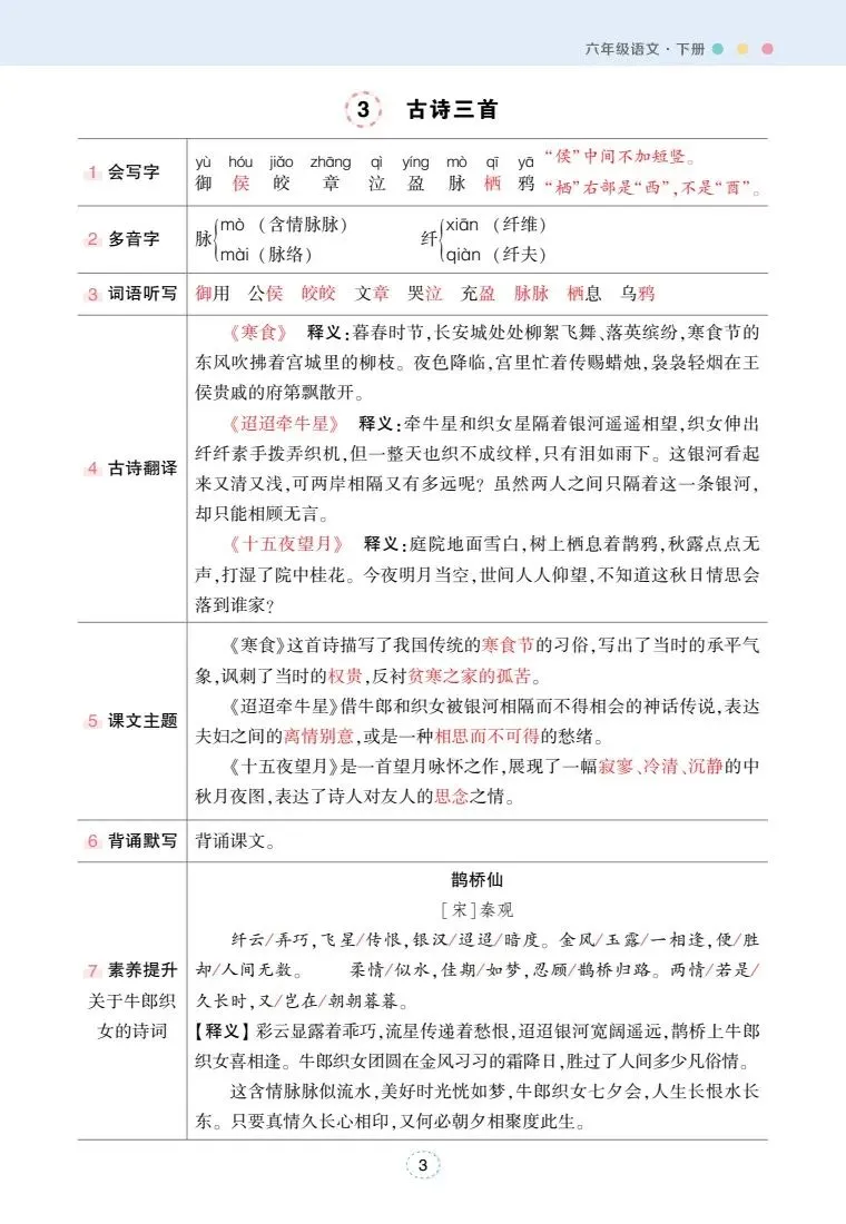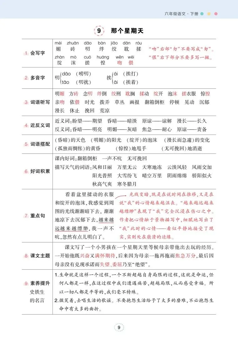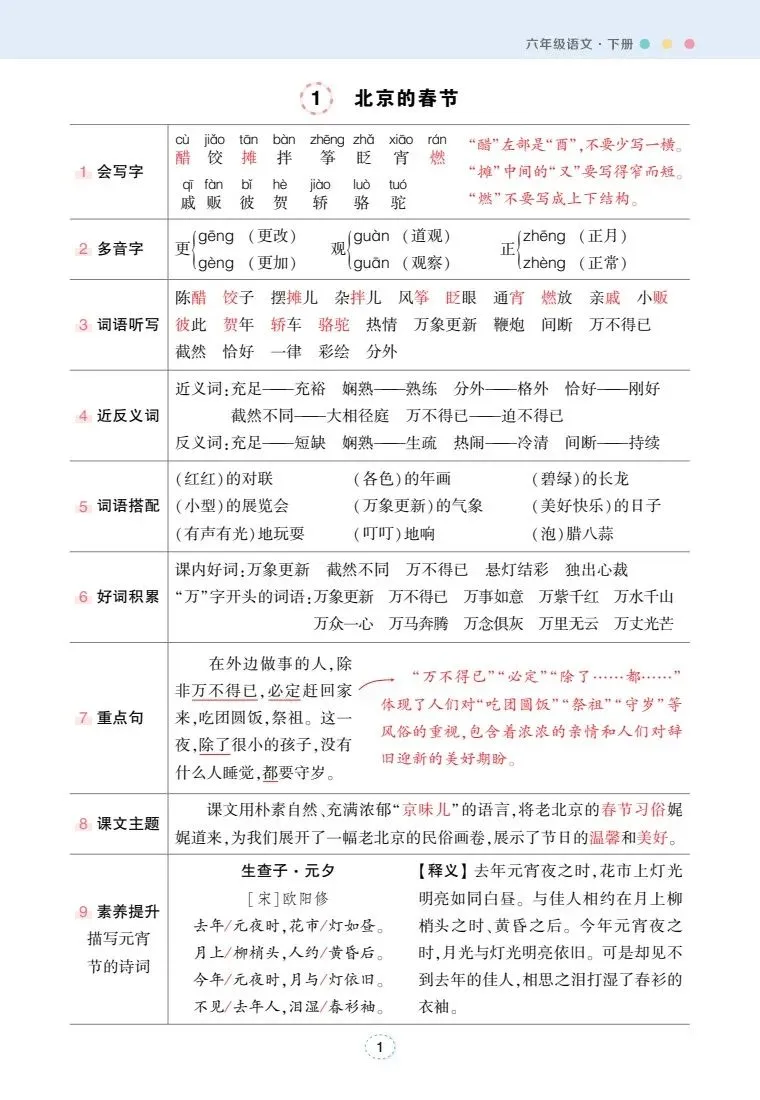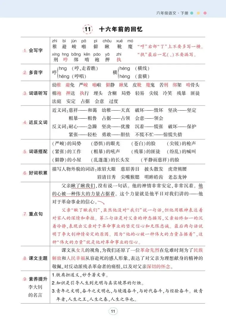 小学语文《每课背记清单》六年级下册(电子版,可下载打印,每课重点,预习必背)