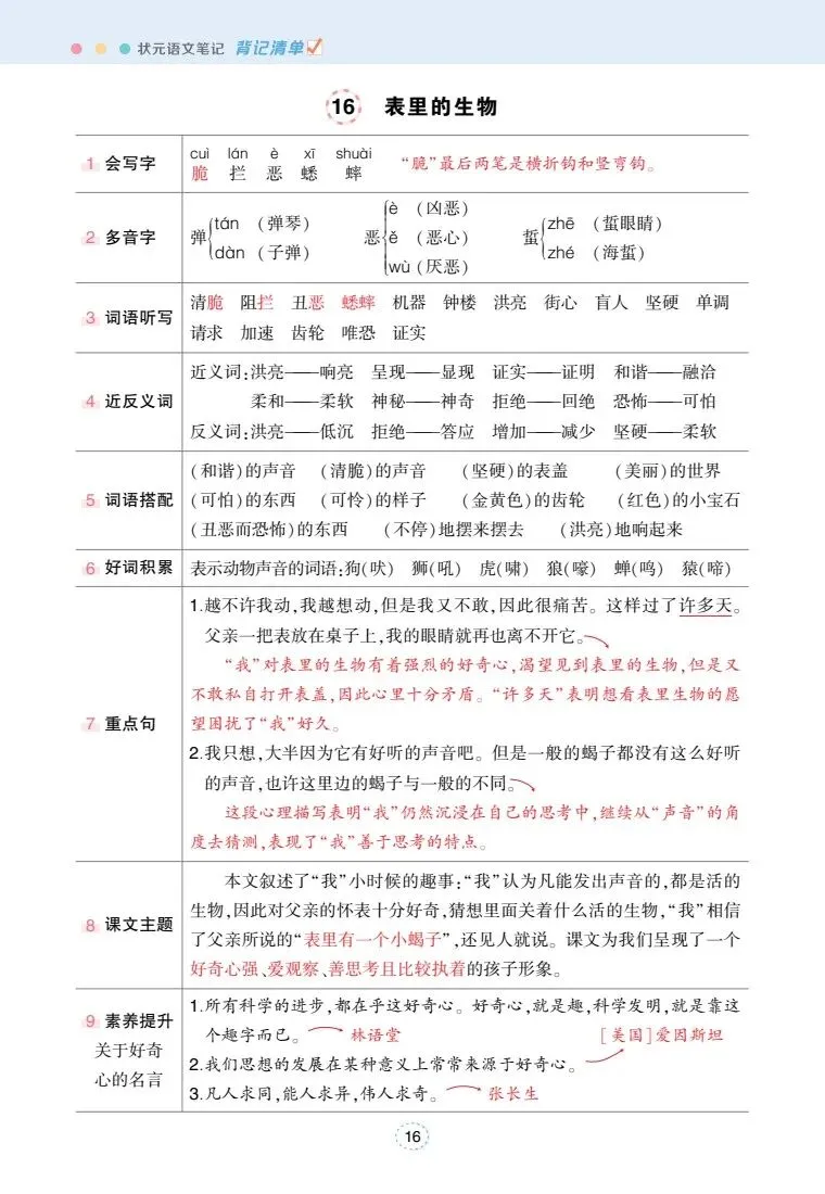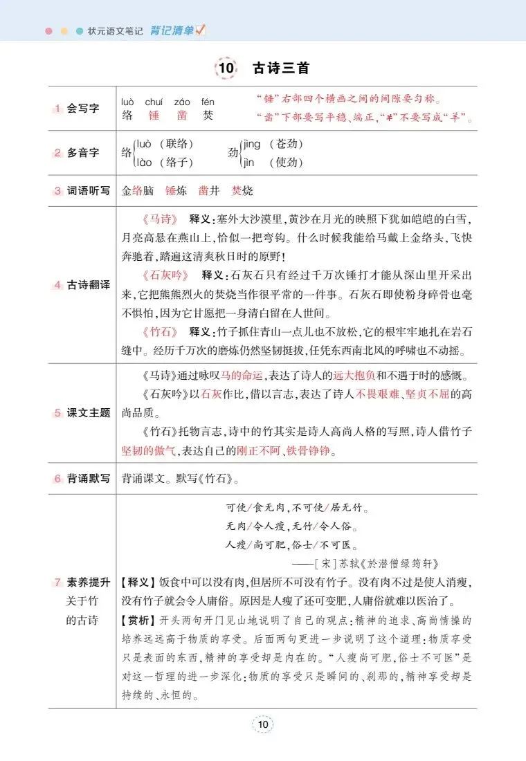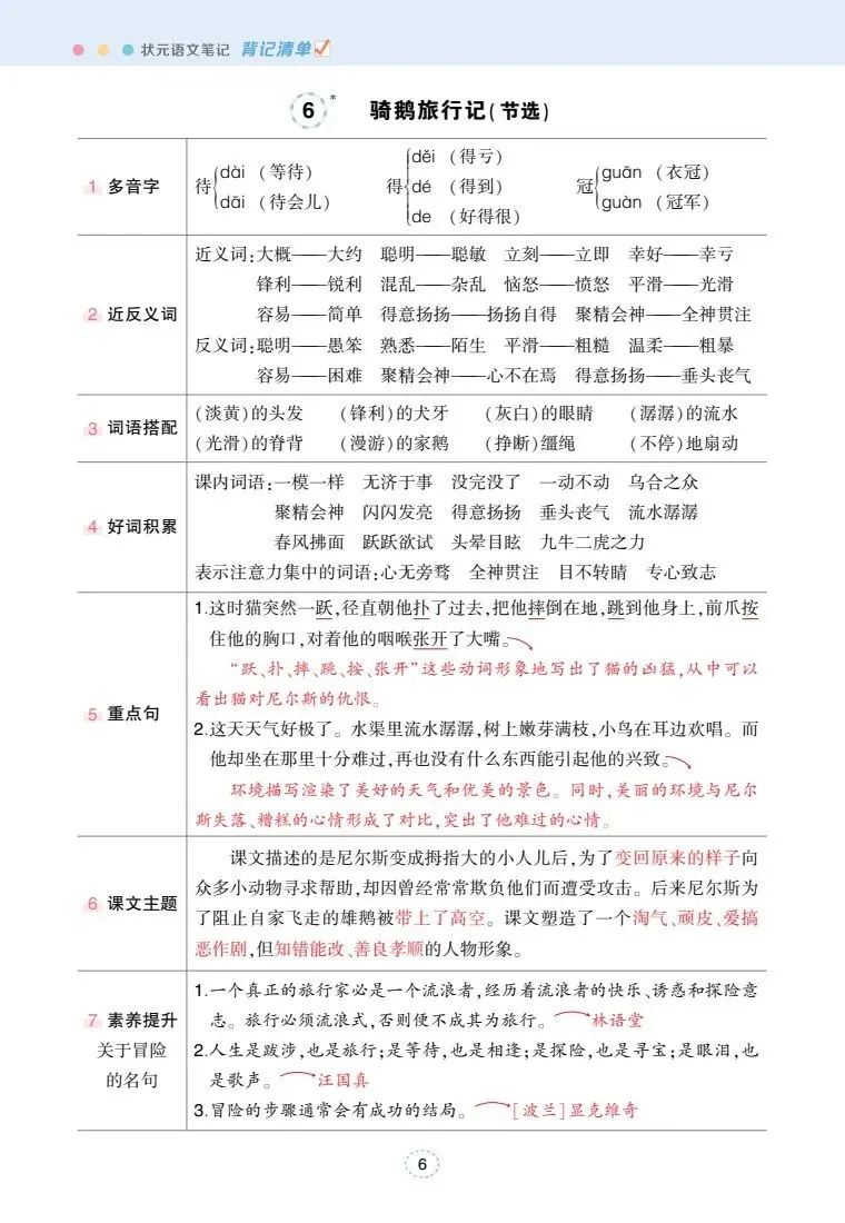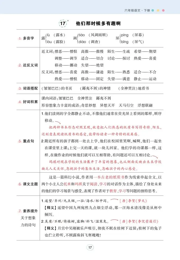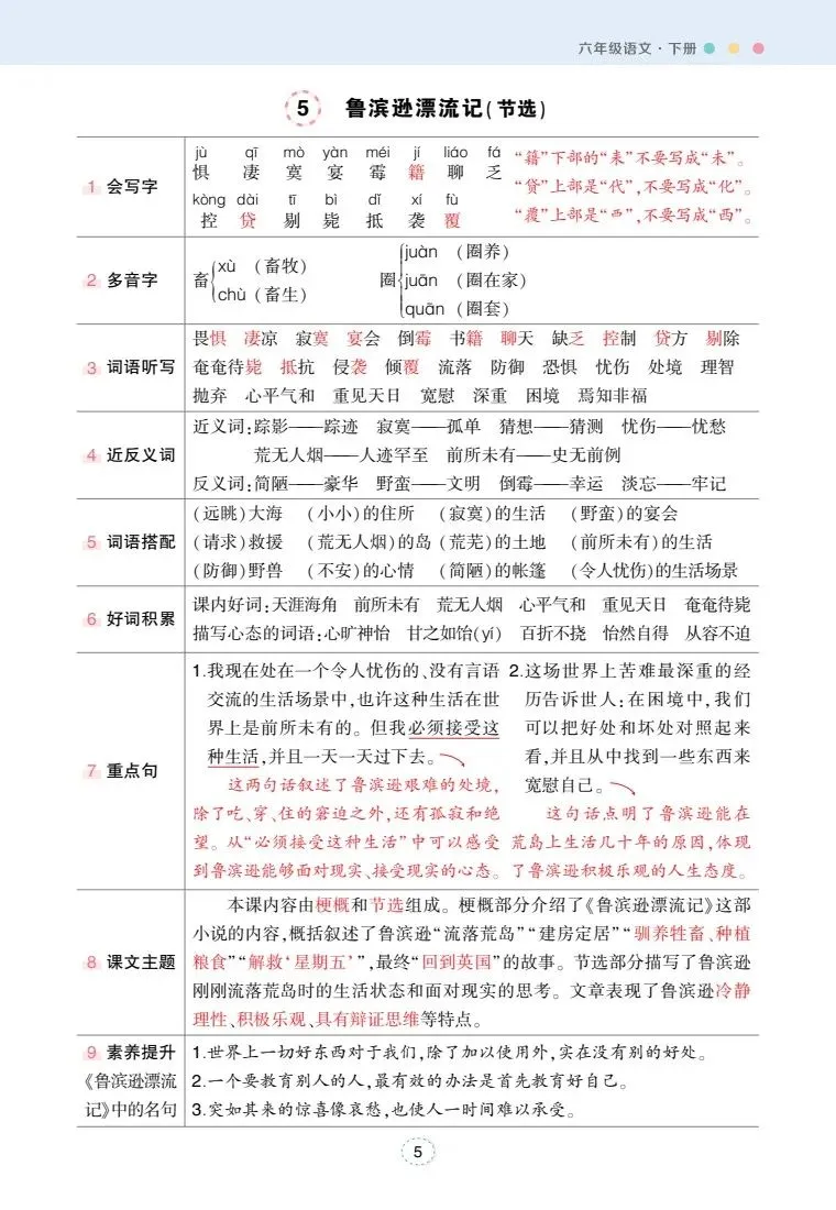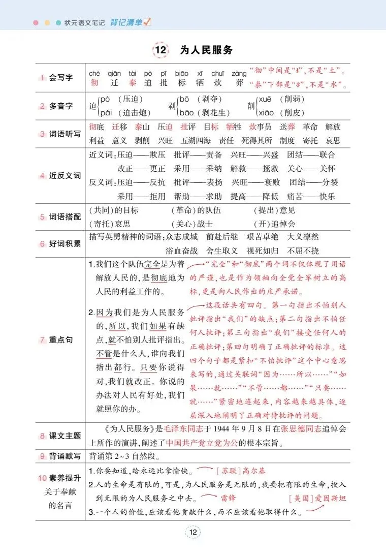 小学语文《每课背记清单》六年级下册(电子版,可下载打印,每课重点,预习必背)