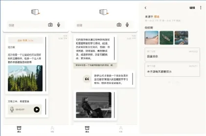 它采用唯美的卡片样式,每一次创建和记录就可以得到一张唯美的卡片,卡片内容可以是文字、录音、图片、视频和清单等。