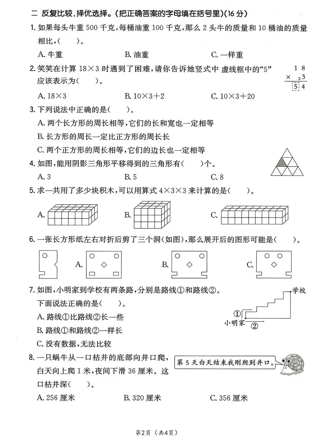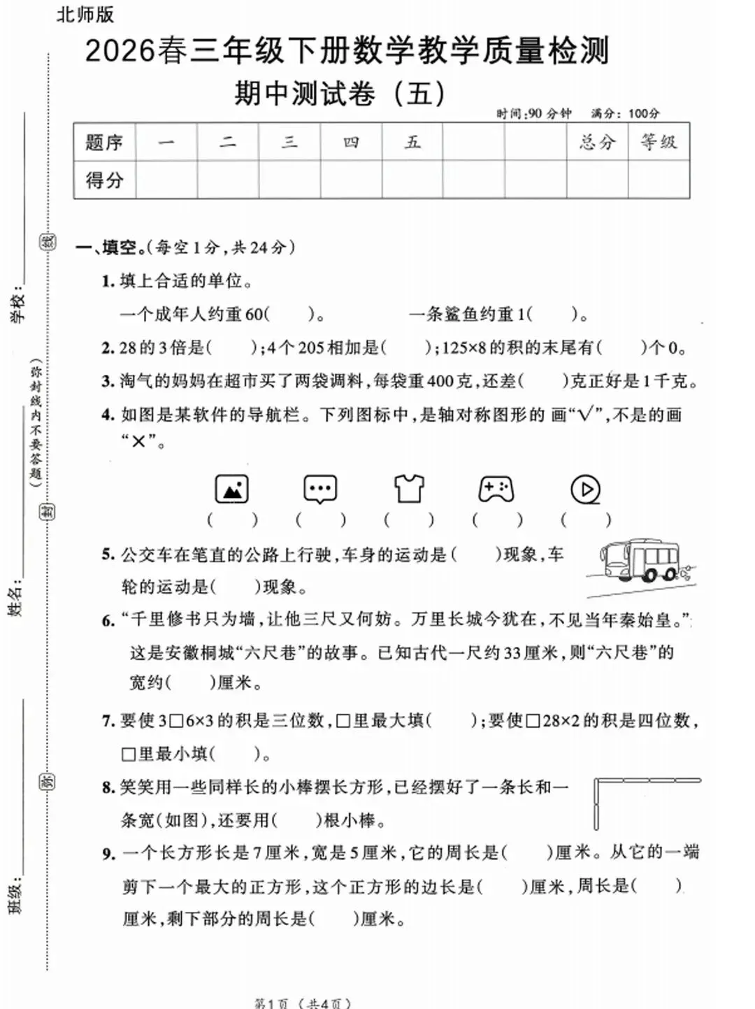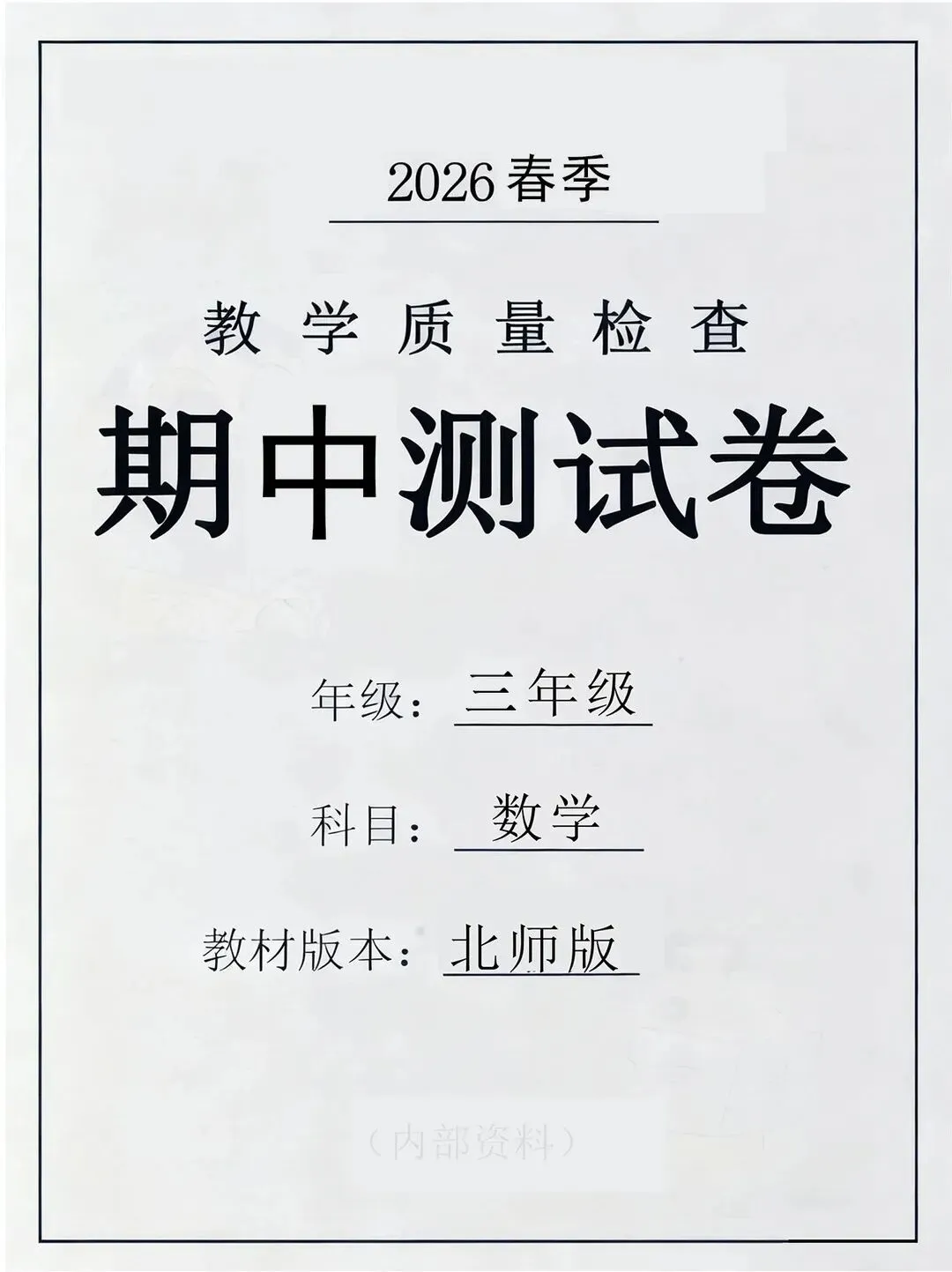 三年级数学期中备考,5套试卷就够了!2026春北师大版小学三年级下册数学【期中测试卷】,精选5套优质测试卷,配套完整参考答案,精准适配期中检测,帮孩子提前练题、查漏补缺,轻松迎战期中考试。