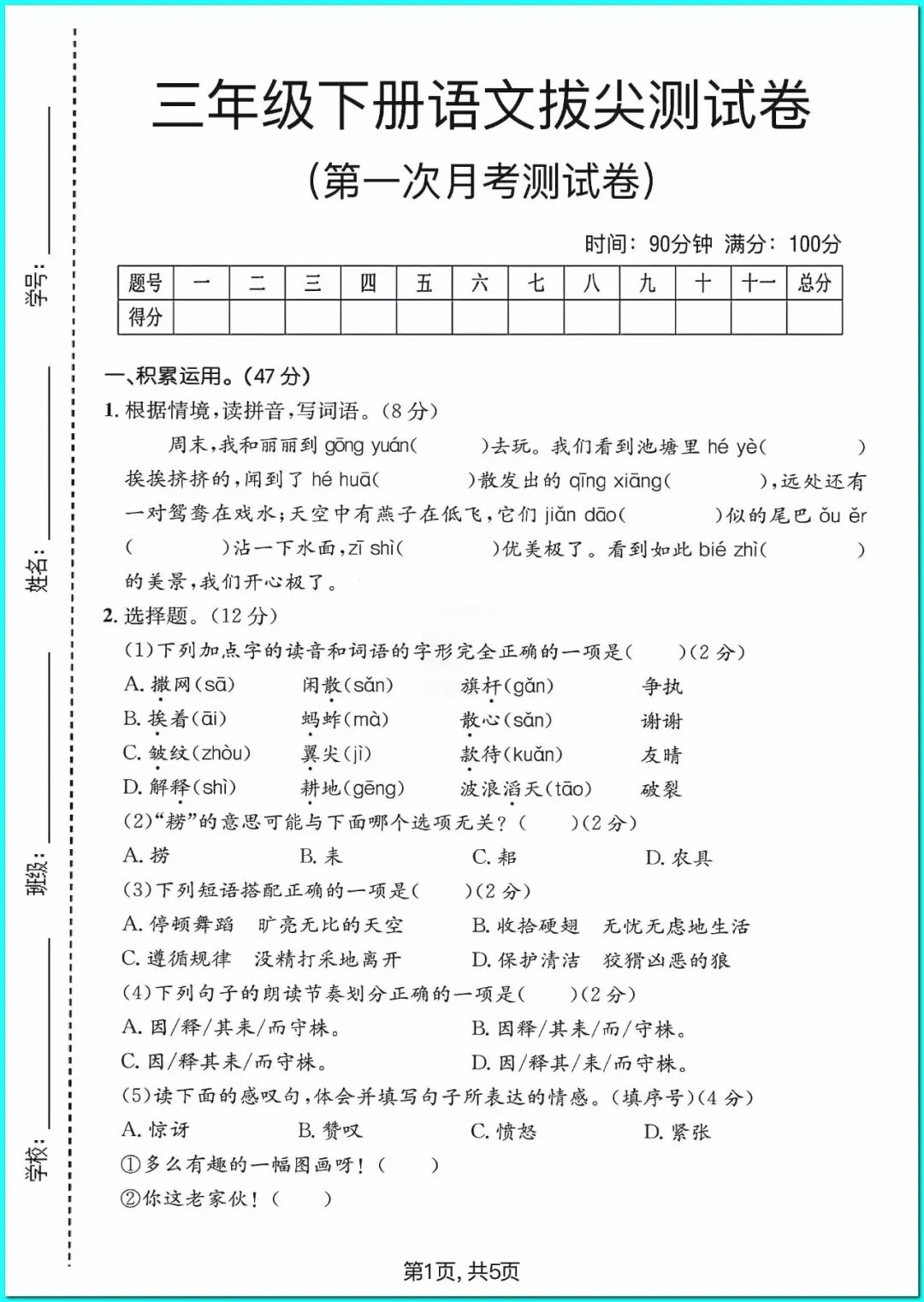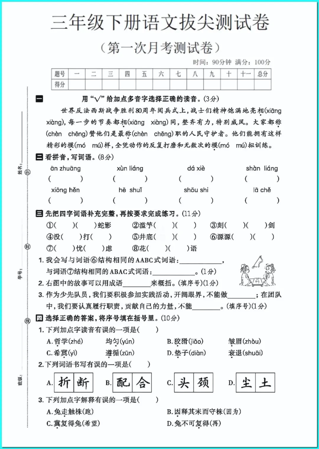 26春三年级下册人教部编版语文《期中拔尖测试卷+单元测试卷+期末拔尖测试卷》(附答案)高清可打印