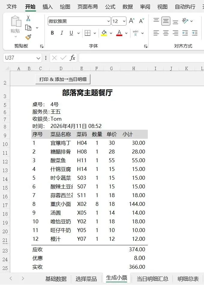 今天给大家推荐一套超实用的Excel点餐系统模板,不仅颜值在线,还能自动生成小票、汇总当日明细、管理菜品菜单。