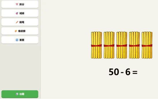 第四步,巩固练习:使用“AI小助手”出题功能进行随机出题。层次1:巩固练习前几题继续借助小棒理解算理。层次2:巩固练习后几题学生直接用算法自主解决。