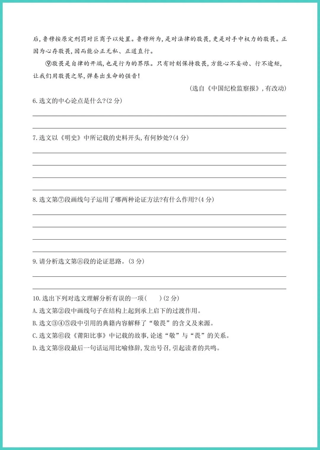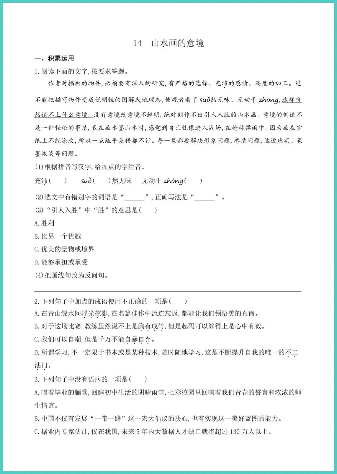 【免费下载】九年级(下)语文_练习题14_山水画的意境 | PDF完整高清电子版可打印