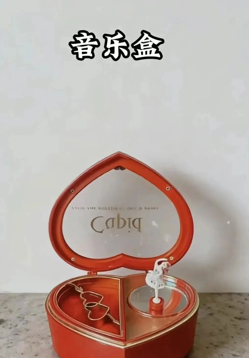 心形的那种最常见, 打开盖子里面有个小芭蕾舞演员会转圈, 同时放音乐, 那音乐都是叮叮咚咚的, 很轻很轻, 我也说不上来是什么曲子, 反正就是那个调调, 女孩子基本人手一个, 我表姐结婚的时候还收到过一个特别精致的, 木头做的, 上面还有雕花, 贵得很, 不过说实话那个音乐听久了有点瘆人, 尤其晚上一个人的时候, 突然响起来能吓一跳。