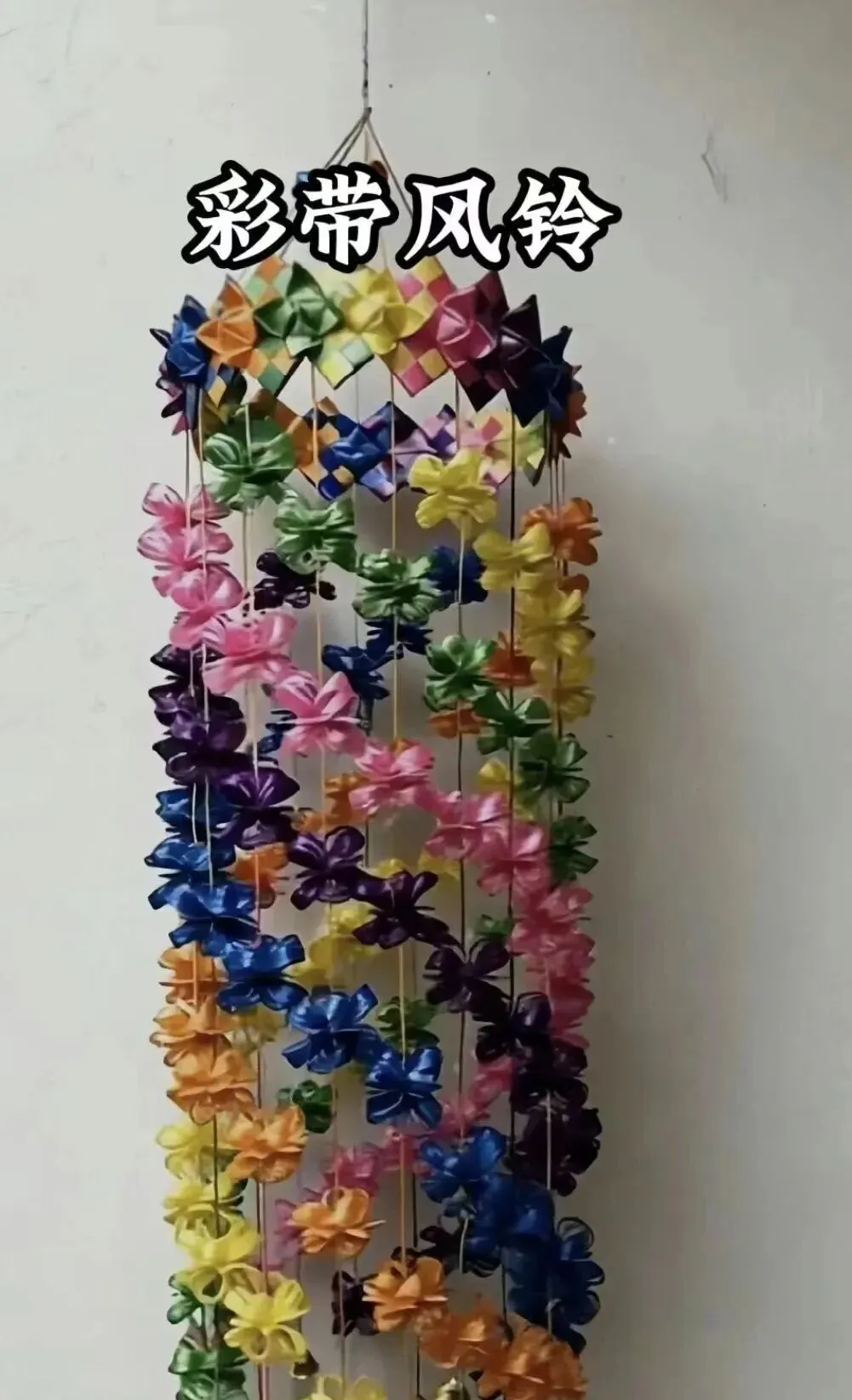 这个得自己做, 用那种亮晶晶的彩带, 折成一个个小方块或者小星星, 然后用线串起来挂在窗户边上, 风一吹就响, 其实声音也不大, 就是那种轻轻的碰撞声, 但是好看啊, 五颜六色的, 阳光照上去还会反光, 我小学的时候特别爱做这个, 做了好几串, 挂得满屋子都是, 我妈说太花里胡哨了, 让我摘下来, 我死活不肯, 后来有一串掉下来了, 散了一地, 我捡了半天也没捡完整, 索性就都扔了, 现在想想那时候真是闲得慌, 有那时间多做两道题不好吗。