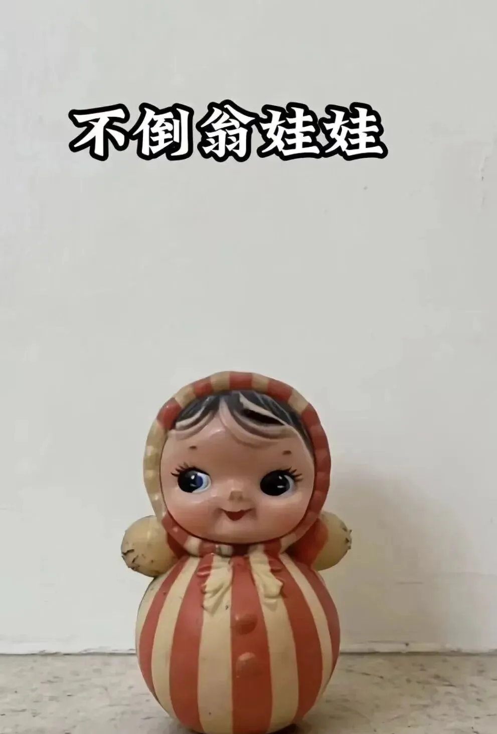 圆滚滚的小人, 红脸蛋, 底下是圆的, 推一下就晃来晃去但不会倒, 小时候能玩一下午, 就光推它看它晃, 也不知道有啥好玩的, 可就是推不够, 我弟弟那会儿比我小, 总跟我抢, 抢不过就哭, 我妈就说你都多大了还跟弟弟抢玩具, 我当时可委屈了, 明明是他先抢我的。这东西现在好像还有卖的, 但是做得没那么好看了, 颜色也不如以前鲜艳。
