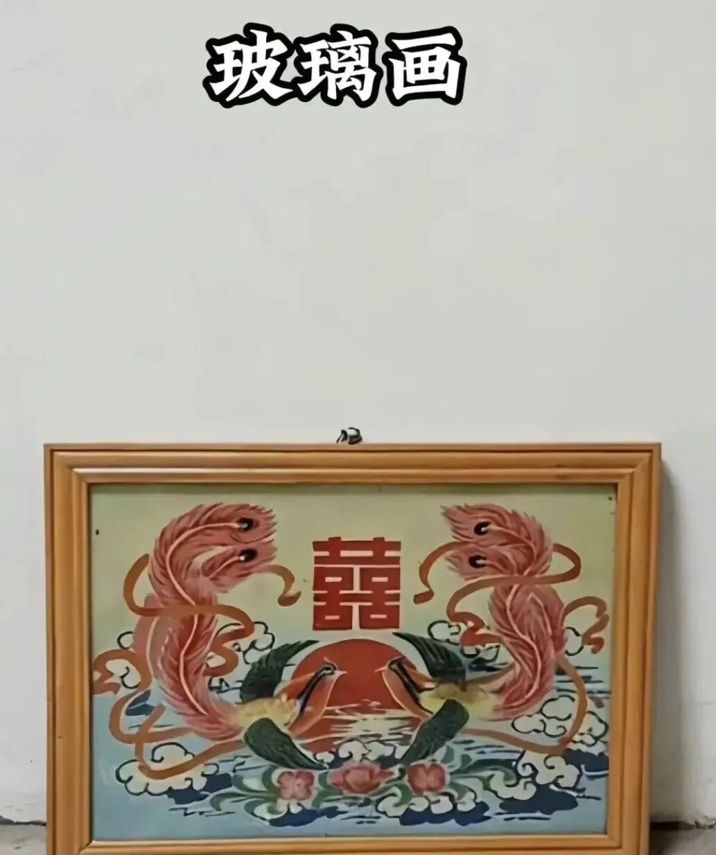 这个现在基本看不见了吧, 就是在玻璃背面画上画, 然后镶在柜门上, 我家那个老书柜上就有, 画的是梅花还是竹子来着, 记不太清了, 反正挺好看的, 那种颜色特别正, 大红大绿的, 一点不含糊, 现在的画都讲究啥莫兰迪色高级灰, 那会儿就是要艳要亮, 越鲜艳越好, 这柜子后来搬家的时候摔坏了, 那块玻璃碎了, 可惜了, 想找人重新画一块都找不到会这手艺的人了, 这门手艺估计快失传了吧。