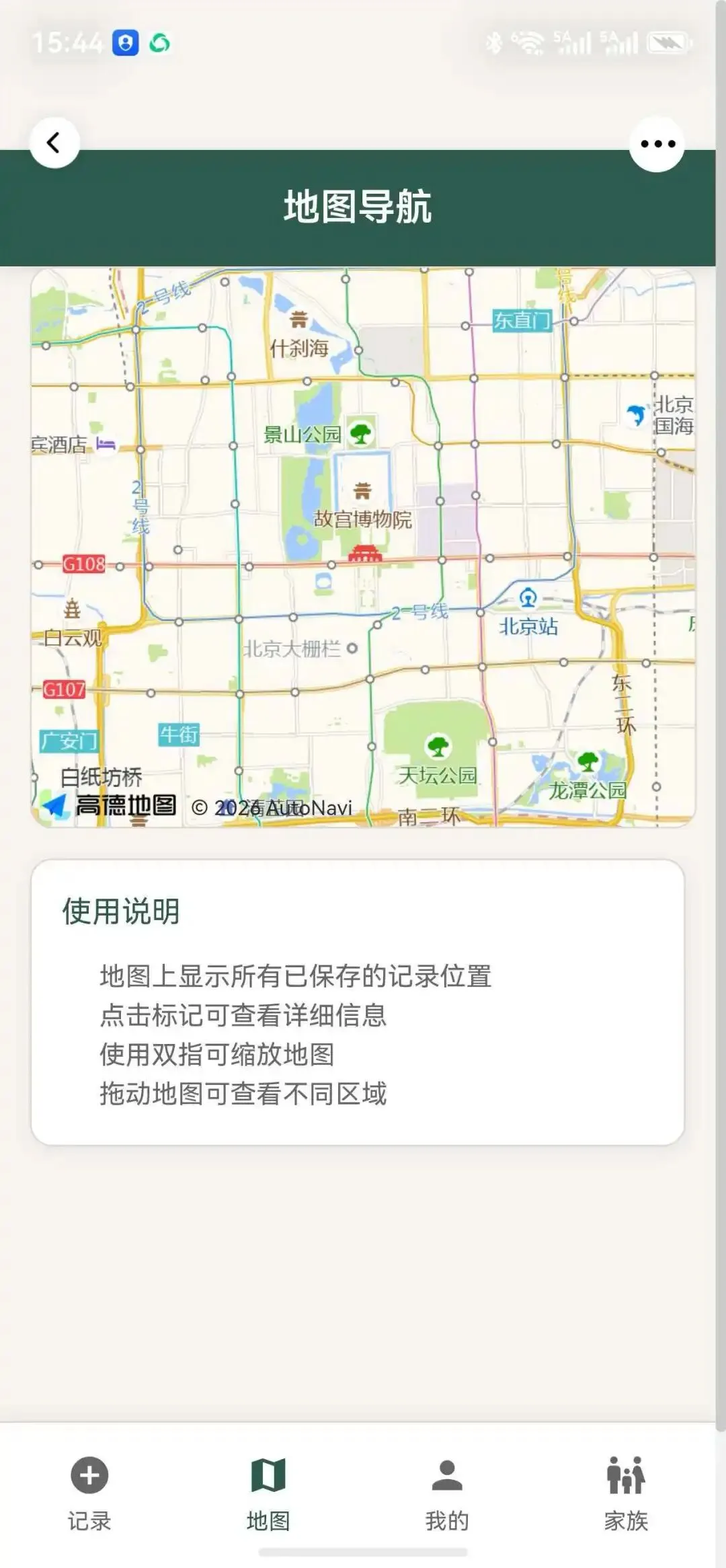理论上,地图上会显示所有已保存的记录位置,点击标记就能查看详细信息。双指缩放、拖动浏览,跟用高德一样顺手。以后去扫墓,直接点开导航就行。但这个功能,还不完善,需要进一步调试。