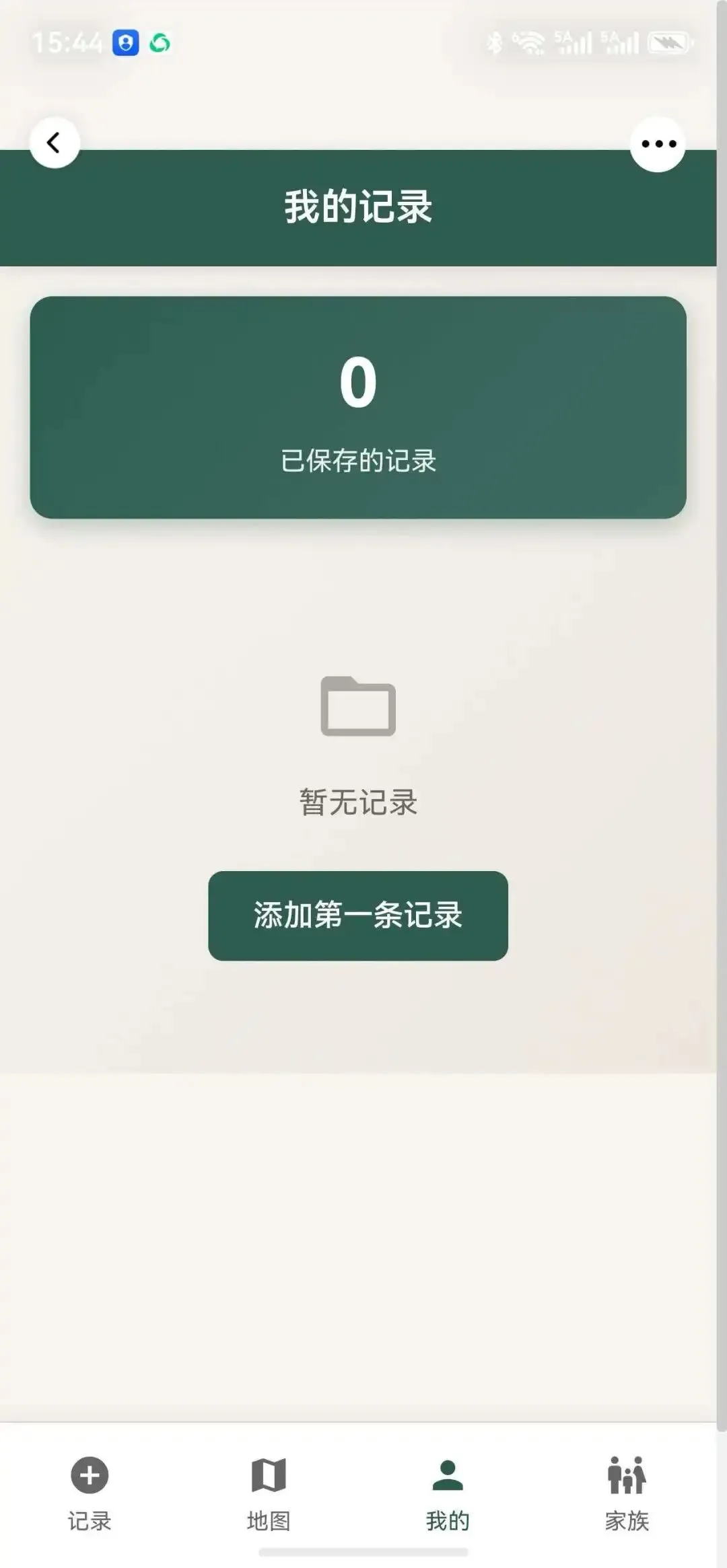 所有已保存的记录汇总在这里。暂时还没有数据,但“添加第一条记录”的按钮已经准备好了——这个空白页面反而让我有点感动,好像一本刚翻开的家谱。