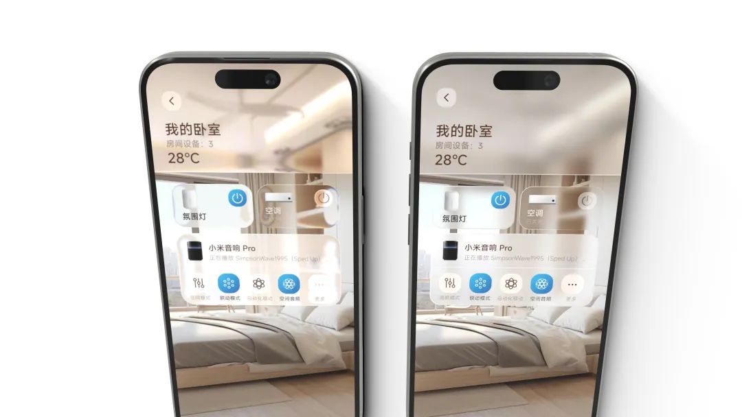 也是在这一阶段,我们开始尝试运用弥散模糊与毛玻璃效果,进一步丰富界面的视觉层次。