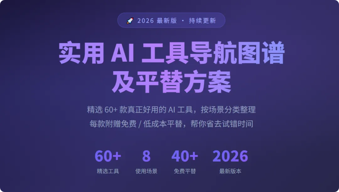 即可免费领取这份《2026 实用 AI 工具导航图谱及平替方案》完整版 👇