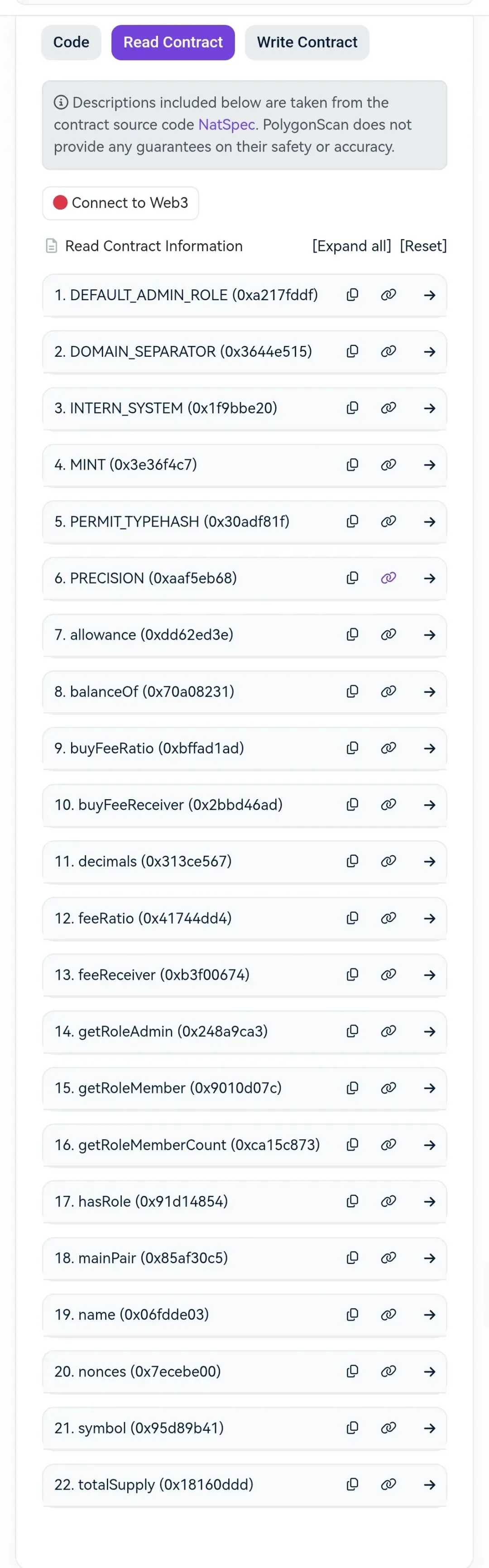 查询结果代码是开源的,但权限没有丢弃,存在特权地址,还是中心化操控,可以增发代币,上调税率,无限提币等。