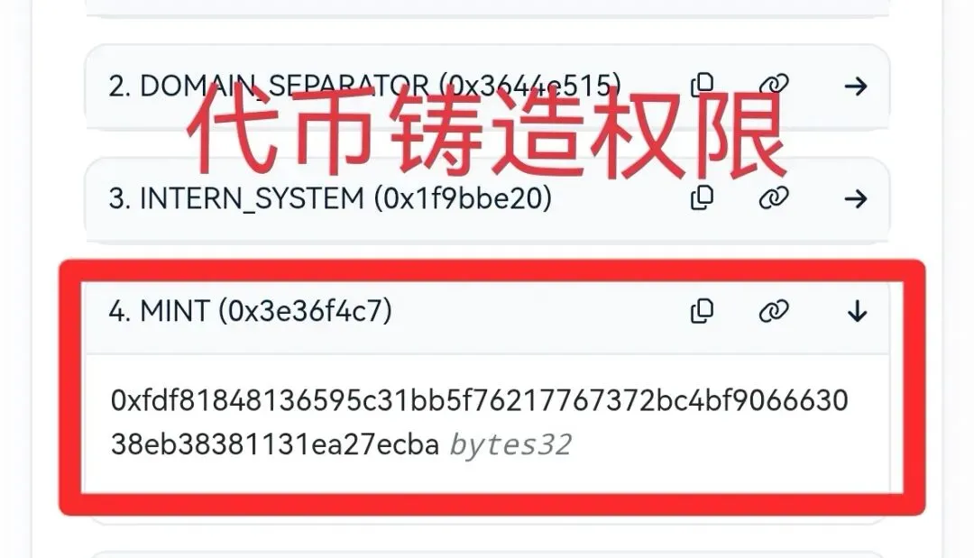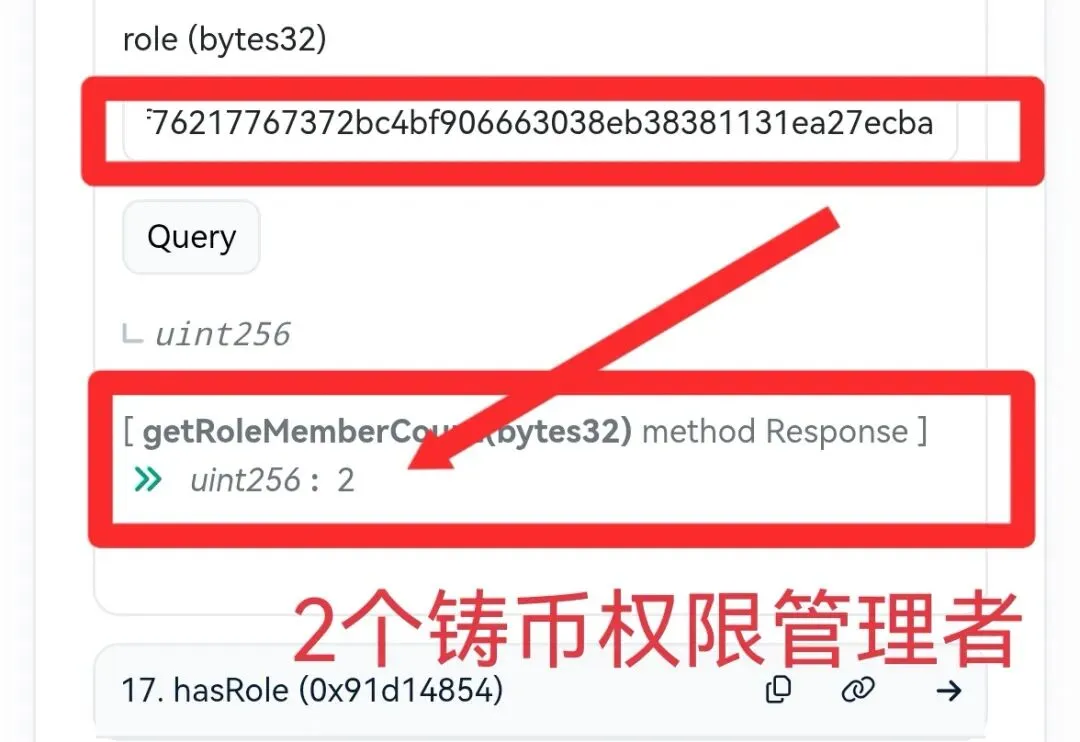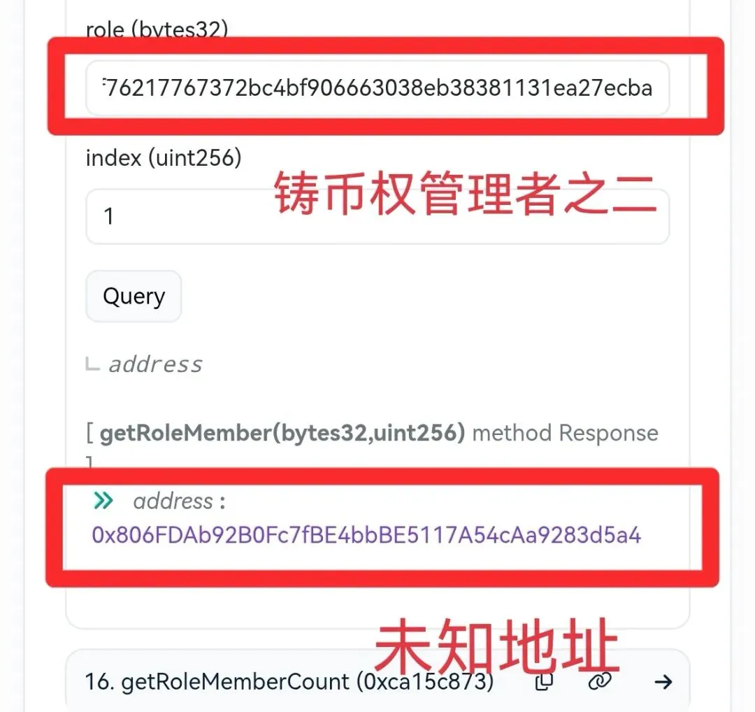 现在查看第四项铸币权,这个哈希显示有两个管理地址