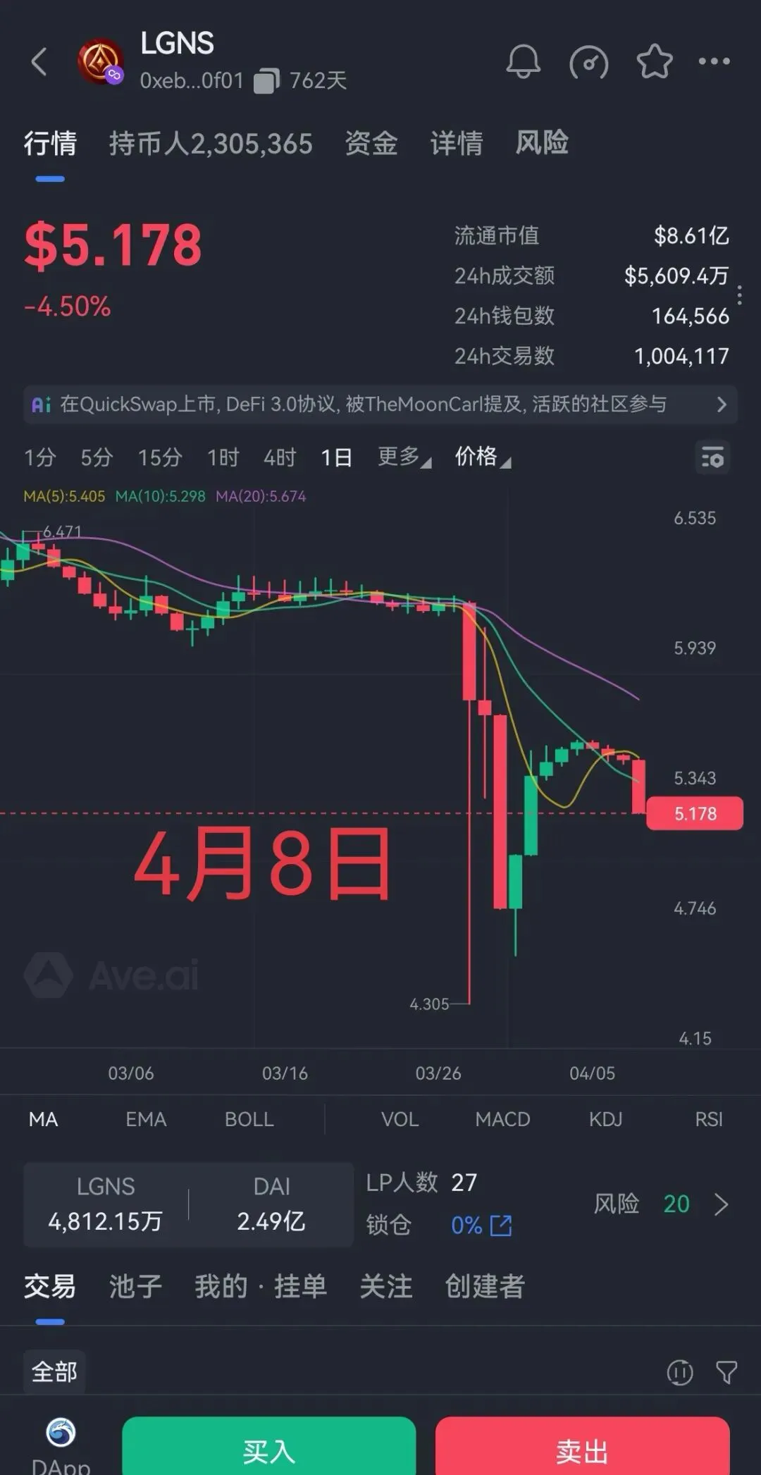 综合以上信息可以做出预判,LGNS的价格会延续螺旋下跌态势,配合间歇的跳水暴跌,眼前这种局面不可改变。参与者算好的3~4个月币量翻倍回本,实际结果远非预期,如果在这段时间里,币价跌一半,你等于没有赚到一分钱,如果跌得更多呢?至于未来呢,当看清币量增长的速度追不上币价下跌的速度时,赚钱效应不在,信仰会塌方,币价会雪崩,资产可能瞬间归零。不是我危言耸听,这种现象在其他Defi项目里已经发生过多次。而这种必然的极端情况的出现,是带模式推广的项目双方心理博弈共同作用的结果。试着想想看,到那时操控方会任由大家卖币套现,眼睁睁看着资金流失,还是会上调税率主动撤池子离场?别忘了从开始就预留好的后门不会是摆设,更不要试图在资金盘里考验人性!到那时所有质押没到期的社区成员,想割肉跑都跑不掉,只能眼睁睁看着,一点办法没有。