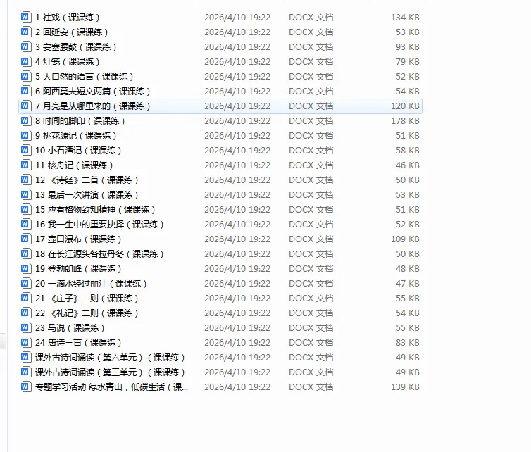 语文新教材七年级下册Word课课练合集