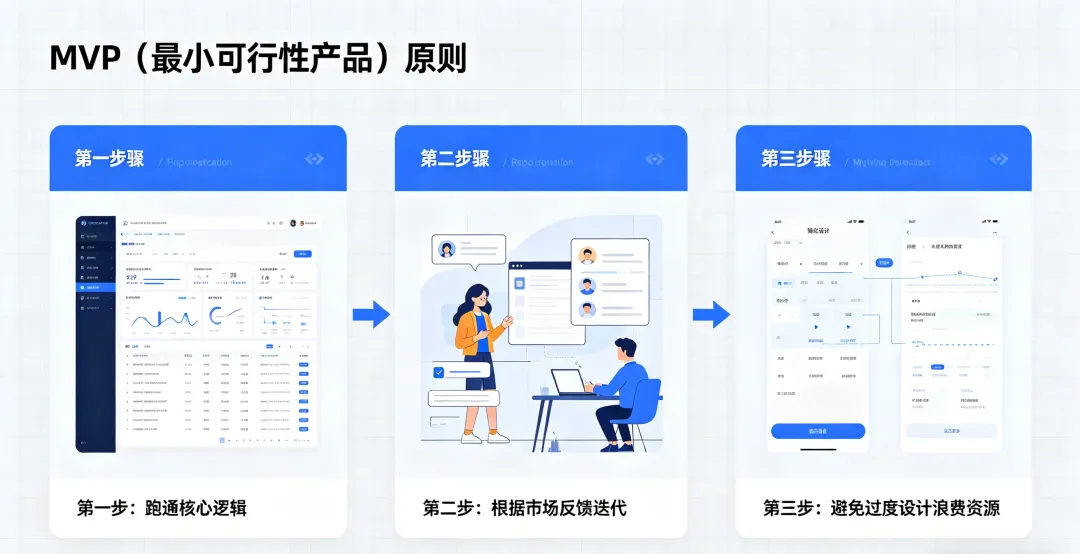破局: 我们提倡 MVP(最小可行性产品) 原则。先跑通核心逻辑,再根据市场反馈迭代,避免由于过度设计导致的资源浪费。