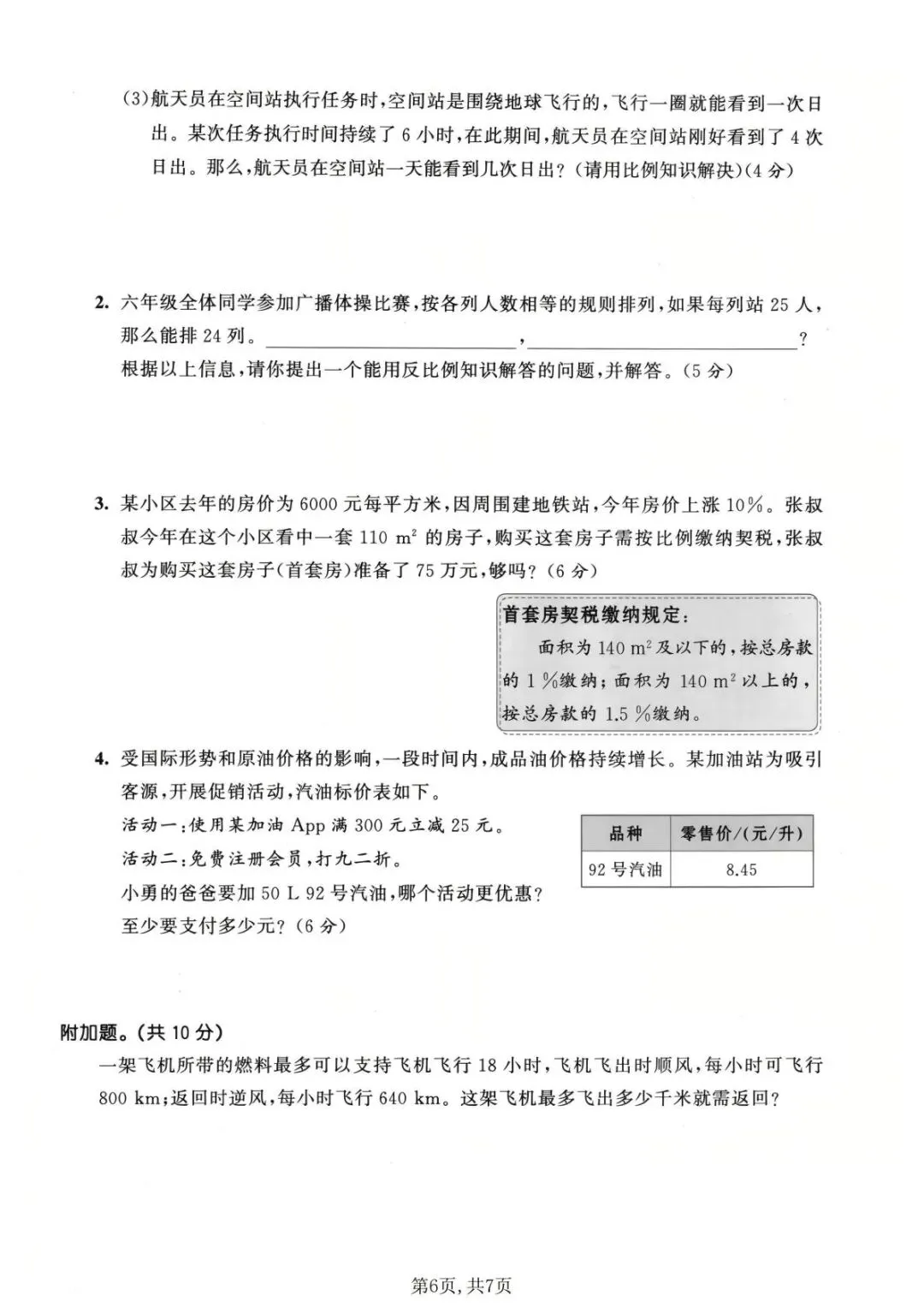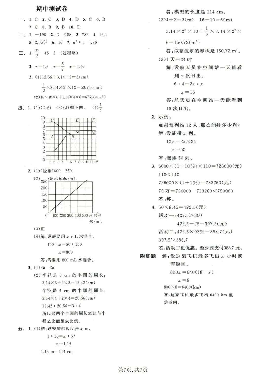 人教版六年级下册数学期中测试卷5套,电子版可打印