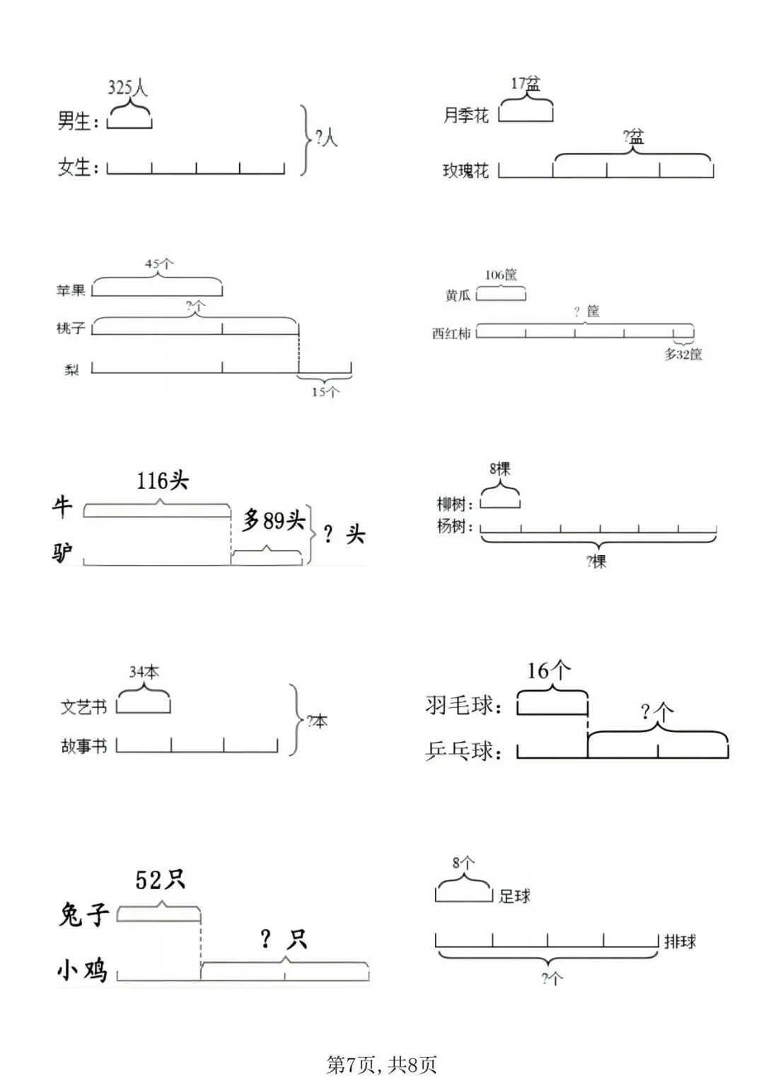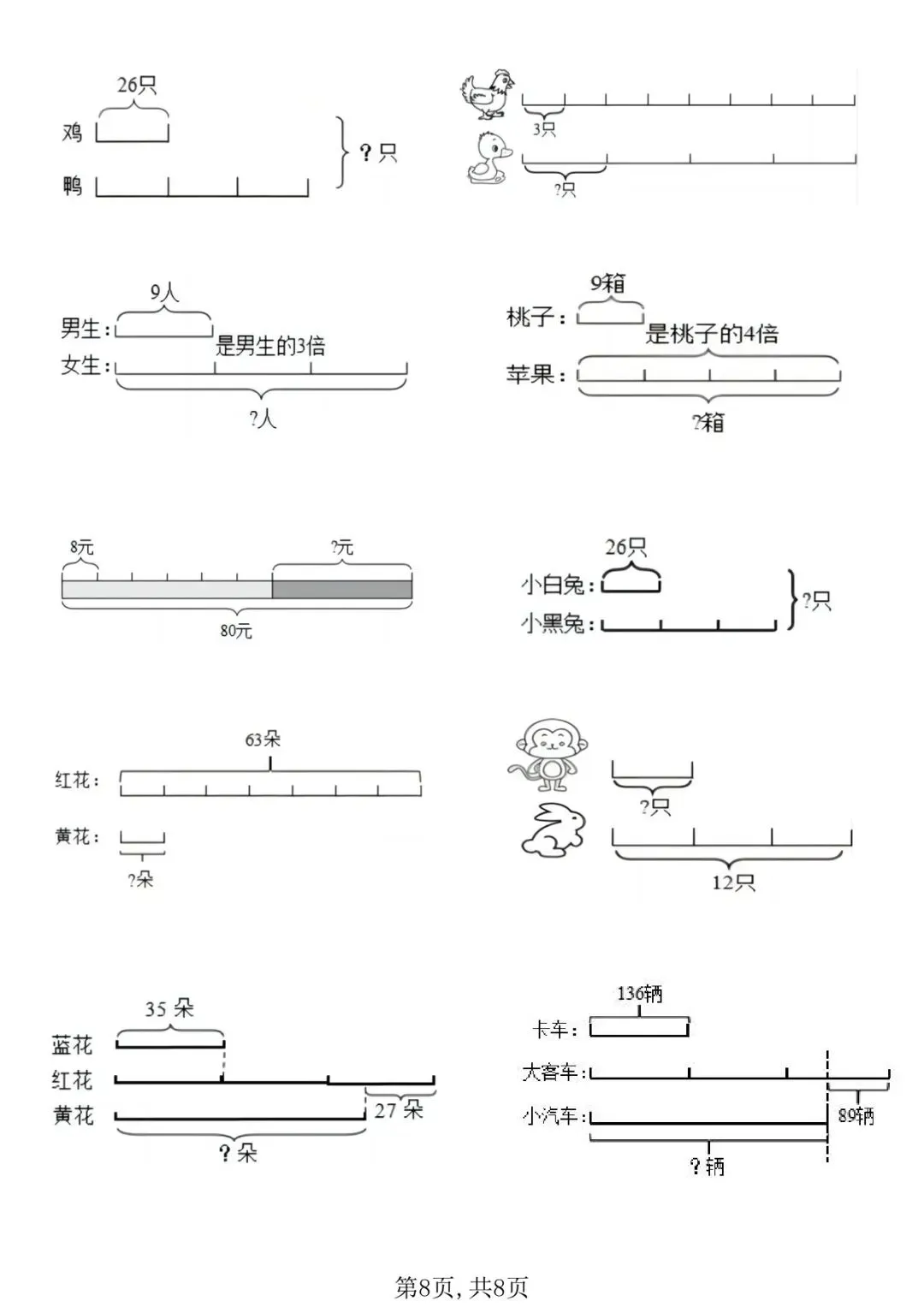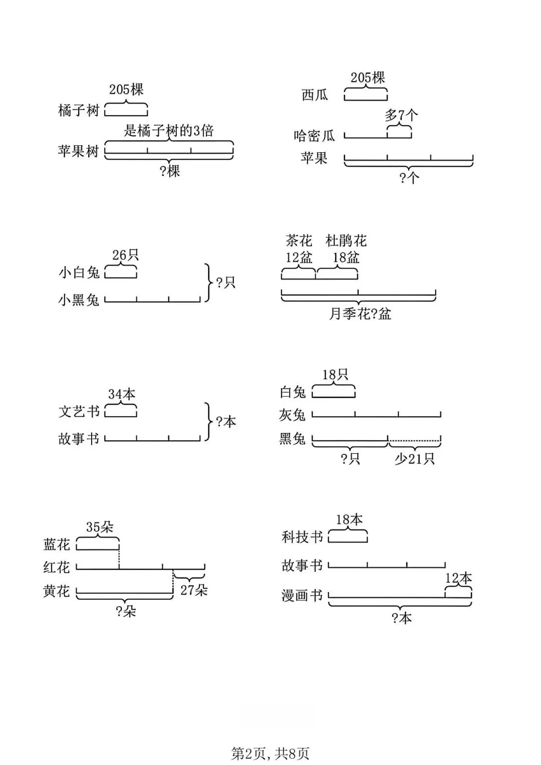 可下载丨二年级下册数学“倍的认识”看图列式计算专练,电子版