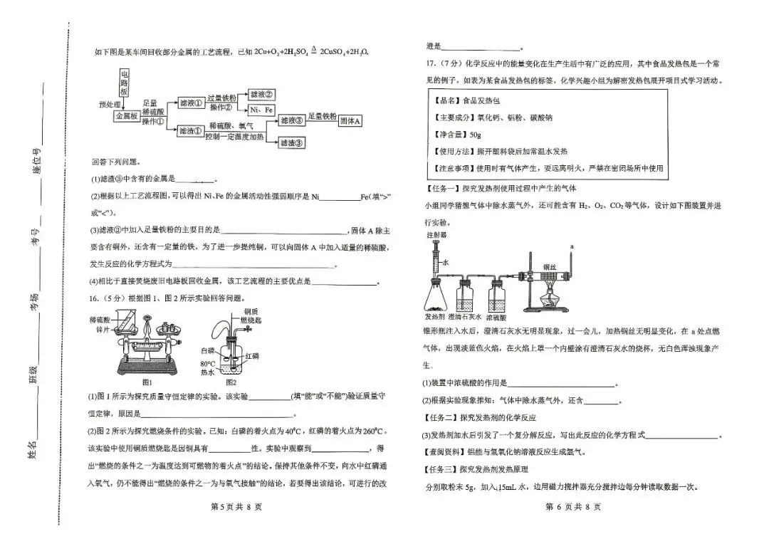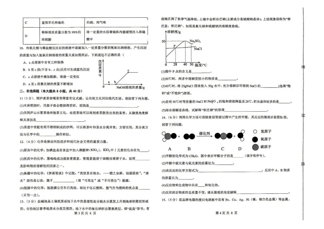 邯郸市扬帆中学九下二模【化学】卷-可打印