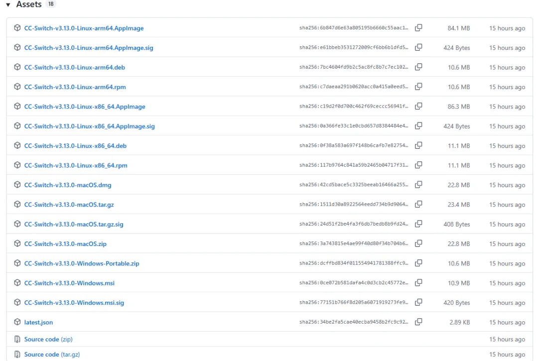 Releases 下载页:https://github.com/farion1231/cc-switch/releases