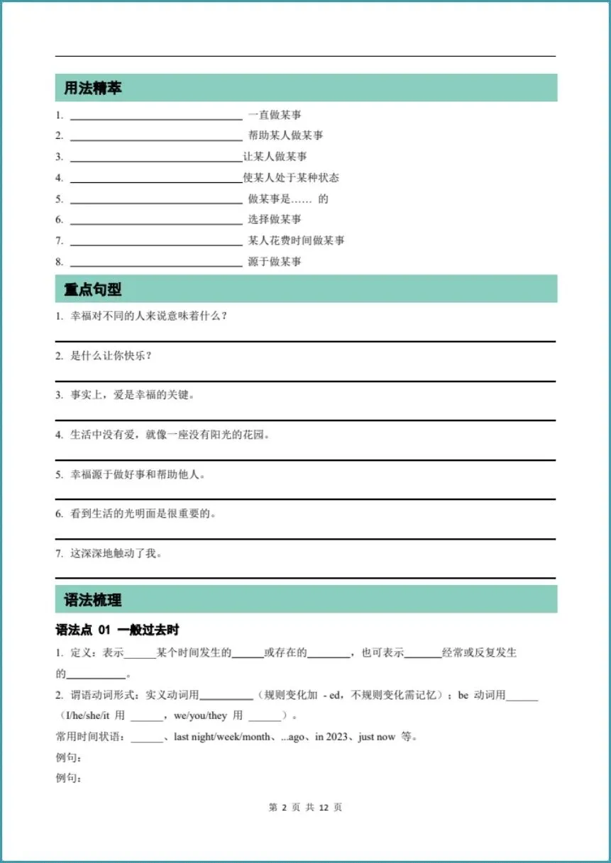 2026春新(外研版)七年级下册《英语》Unit1-3英语全套复习资料:含单词短语句型语法写作(背诵+默写版),可下载打印!