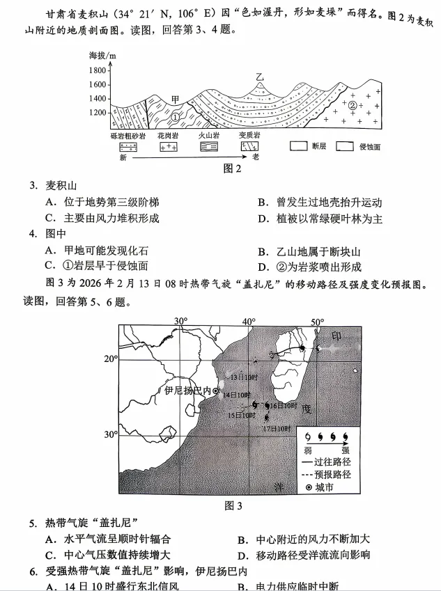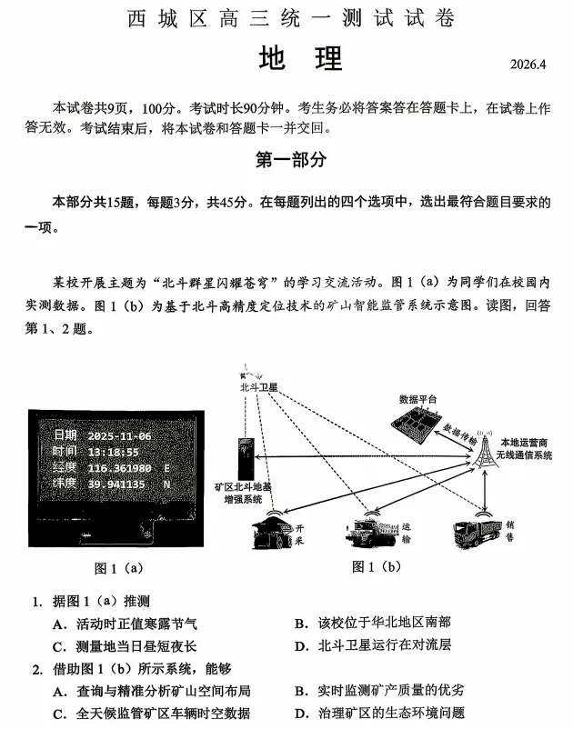 小编整理了2026年北京市西城区高三一模地理,PDF版!可以参考练习。