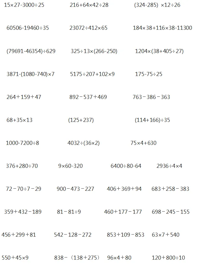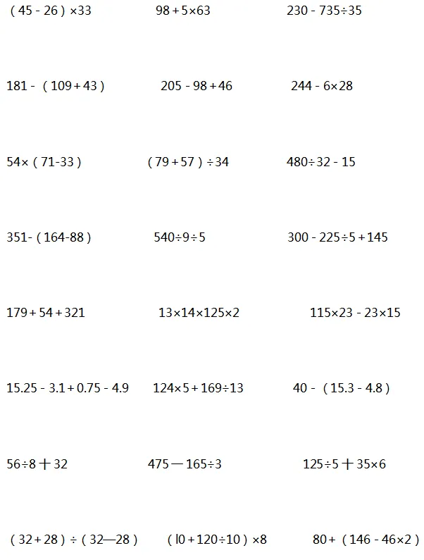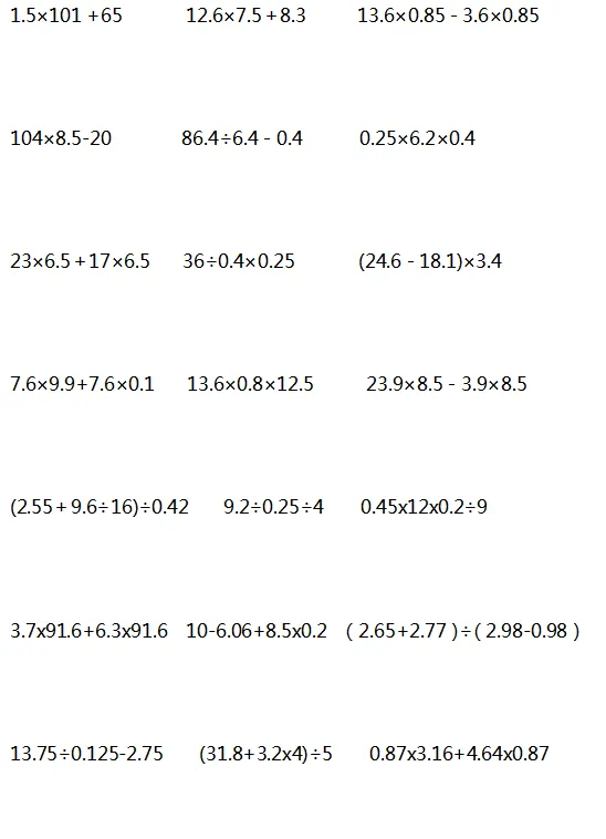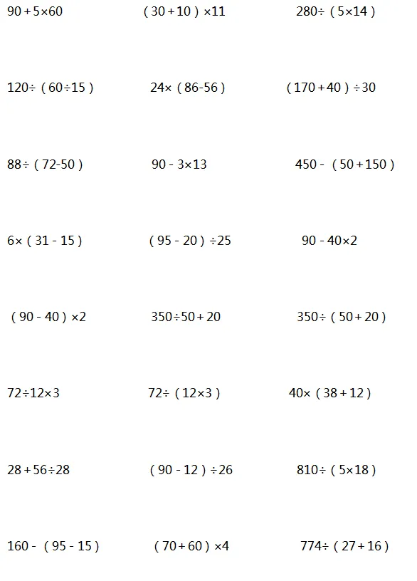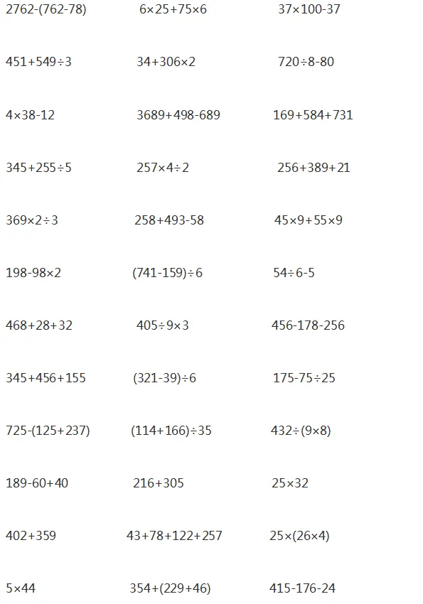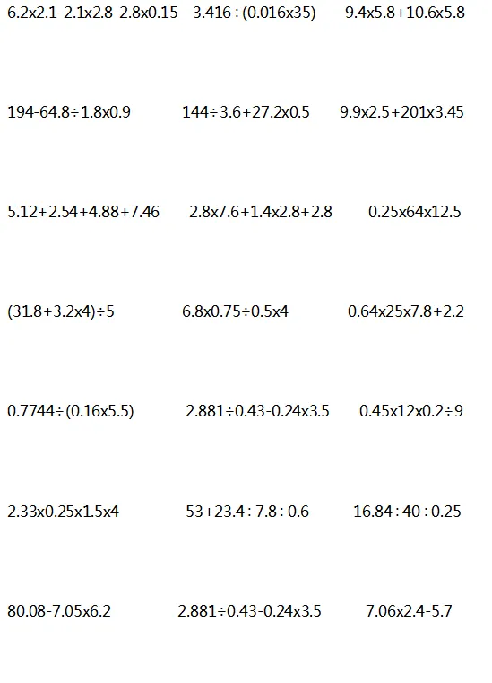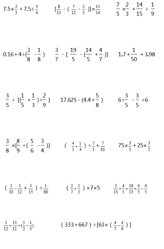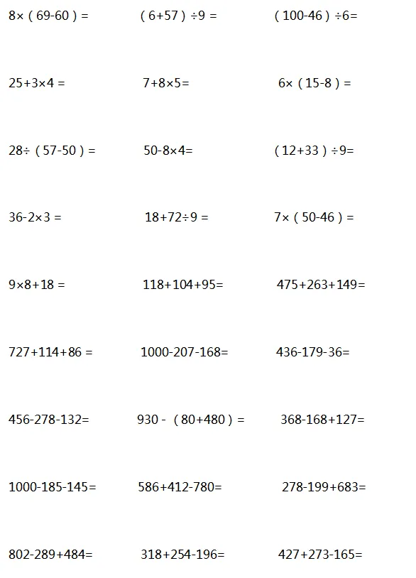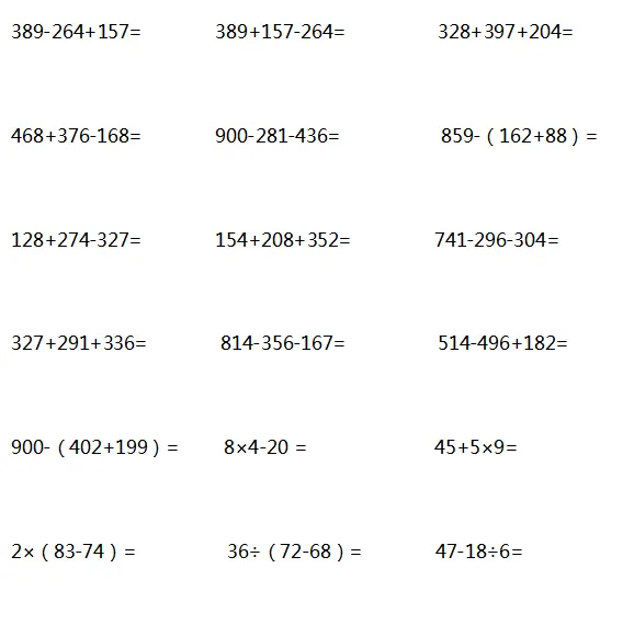 当然是要对孩子进行一些计算题的针对性训练,提高计算能力。下面是老师整理的1-6年级递等式计算,家长可以给孩子打印出来练习。