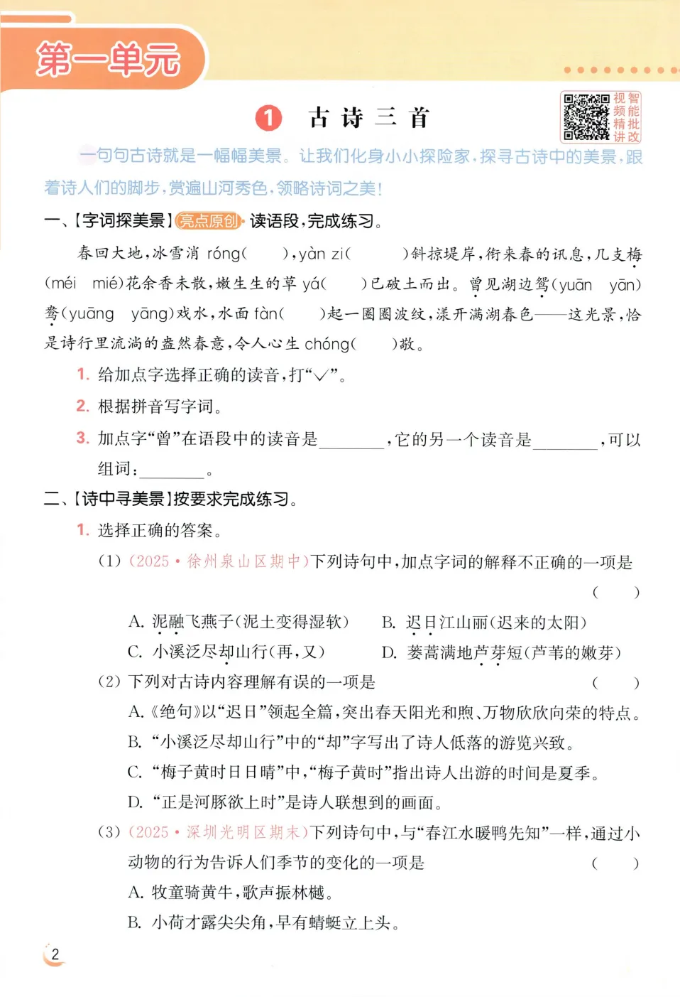 统编版语文1-6年级下册《亮点给力提优课时作业本》含答案 练习+试卷+考点速记 可打印