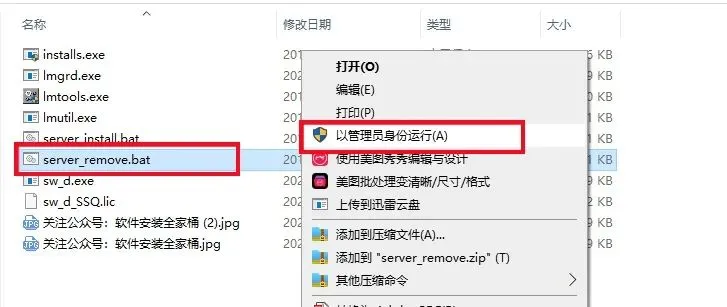 9.鼠标右击【server_remove】程序,选择【以管理员身份运行】。