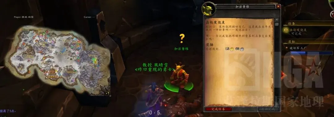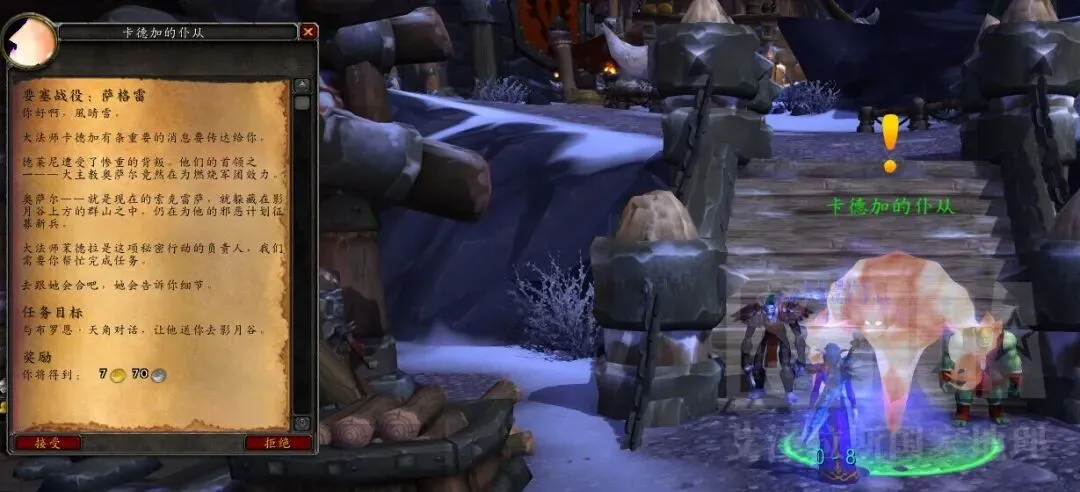 接到任务后,自己飞去霜狼阵地,在落石前找加兹鲁维对话,开启任务线
