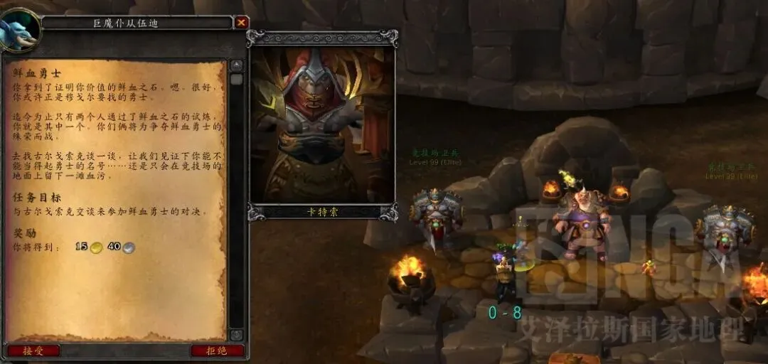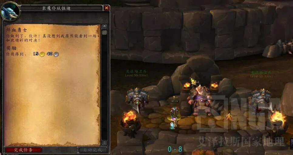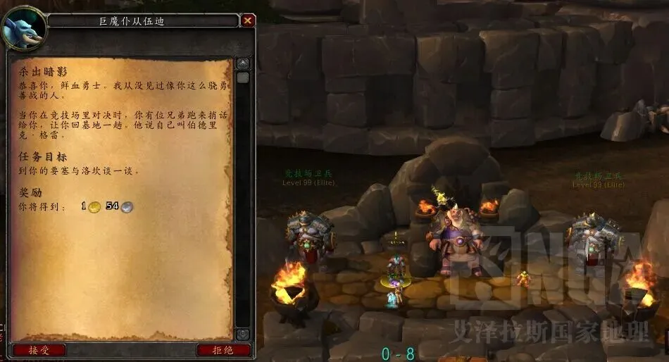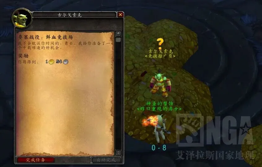 击杀旁边的任务怪,当收集完50个任务物品的时候,去鲜血竞技场里面交任务