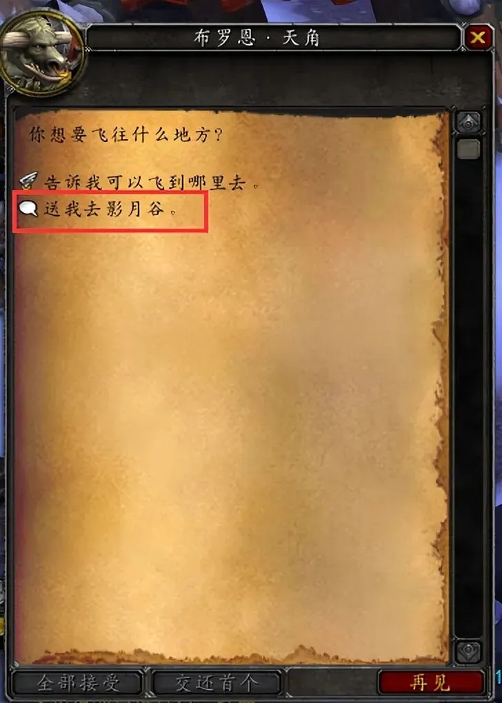 接到任务后,就可以跟要塞的飞行员NPC对话,飞往目的地:影月谷