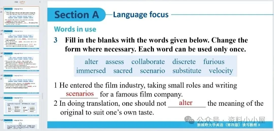 2025年新视野大学英语读写教程3电子版教材+习题答案+课文翻译(第四版)